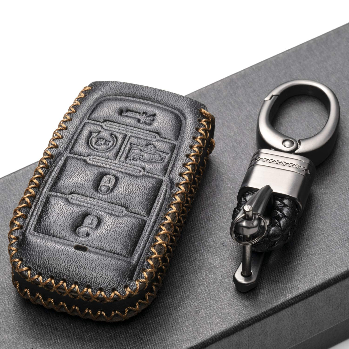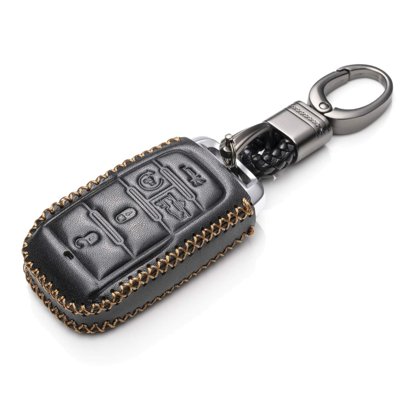 Vitodeco Genuine Leather Smart Key Fob Case Cover Protector Compatible With Ram 1500, Ram 2500, Ram 3500 2019-2025 (5-Button Wit