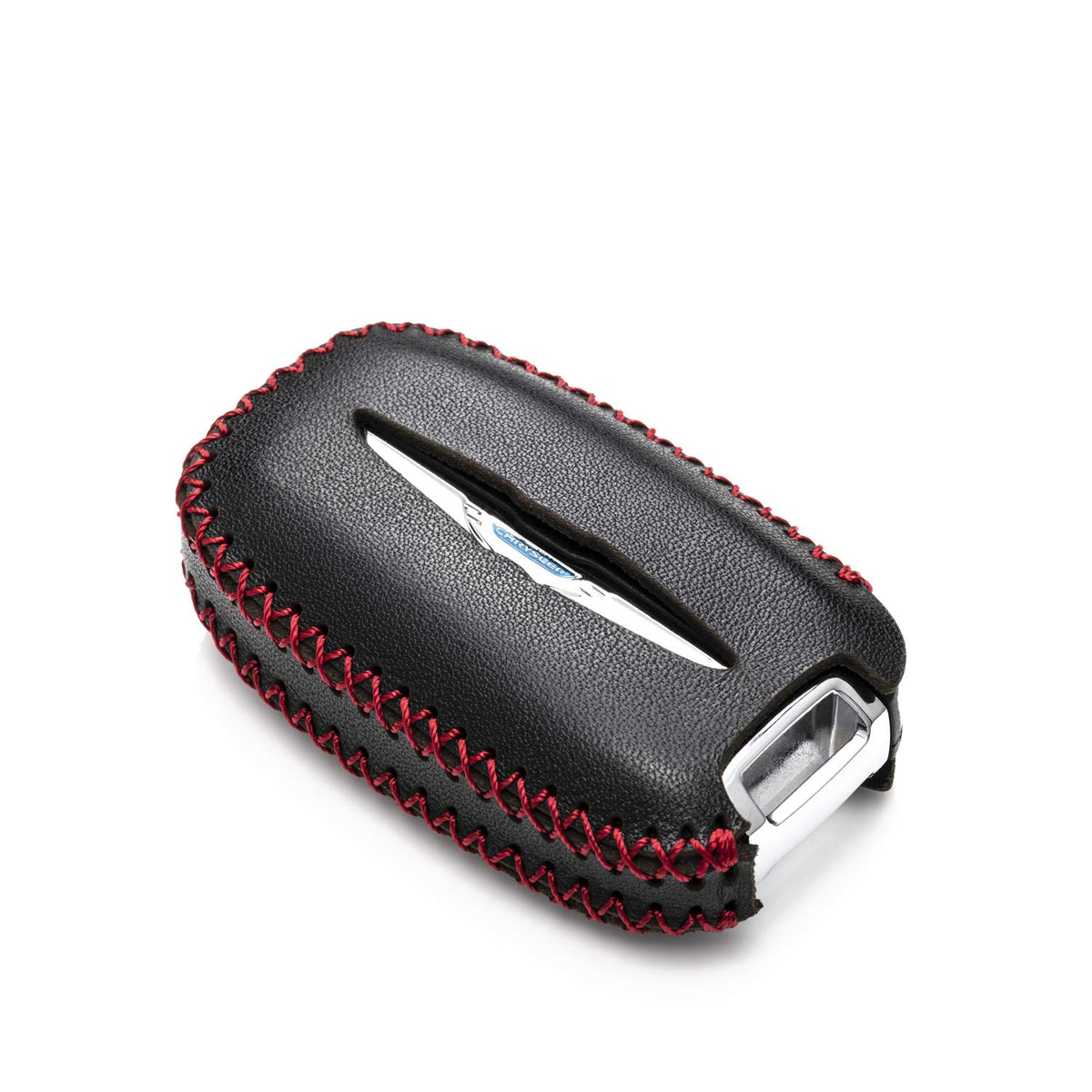 Vitodeco Genuine Leather Smart Key Fob Case Cover Protector with Leather Key Clap Compatible for Chrysler Pacifica 2017 - 2024 (7-Button, Black/Red)