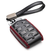 Vitodeco Genuine Leather Smart Key Fob Case Cover Protector with Leather Key Strap Compatible for 2017-2020 Genesis G70, G80, G90 (4-Button with Tailgate, Black/Red)