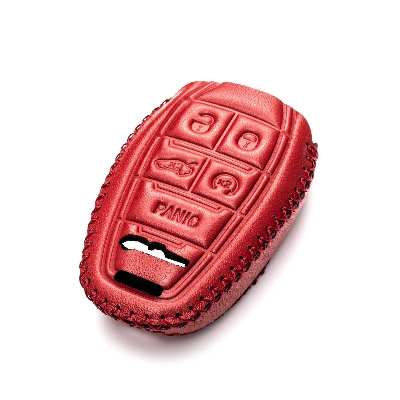 Compatible for Alfa Romeo GIULIA, STELVIO (2017 - 2025), TONALE (2024 - 2025), 4C SPIDER (2017 - 2023) with 5-Buttons Smart Key Fob This Leather key case by Vitodeco is the perfect way to provide full protection and fashion to the smart key of your vehicle. It is constructed from durable, high quality materials, with vibrant colors that are easily cleaned with soap and water.
