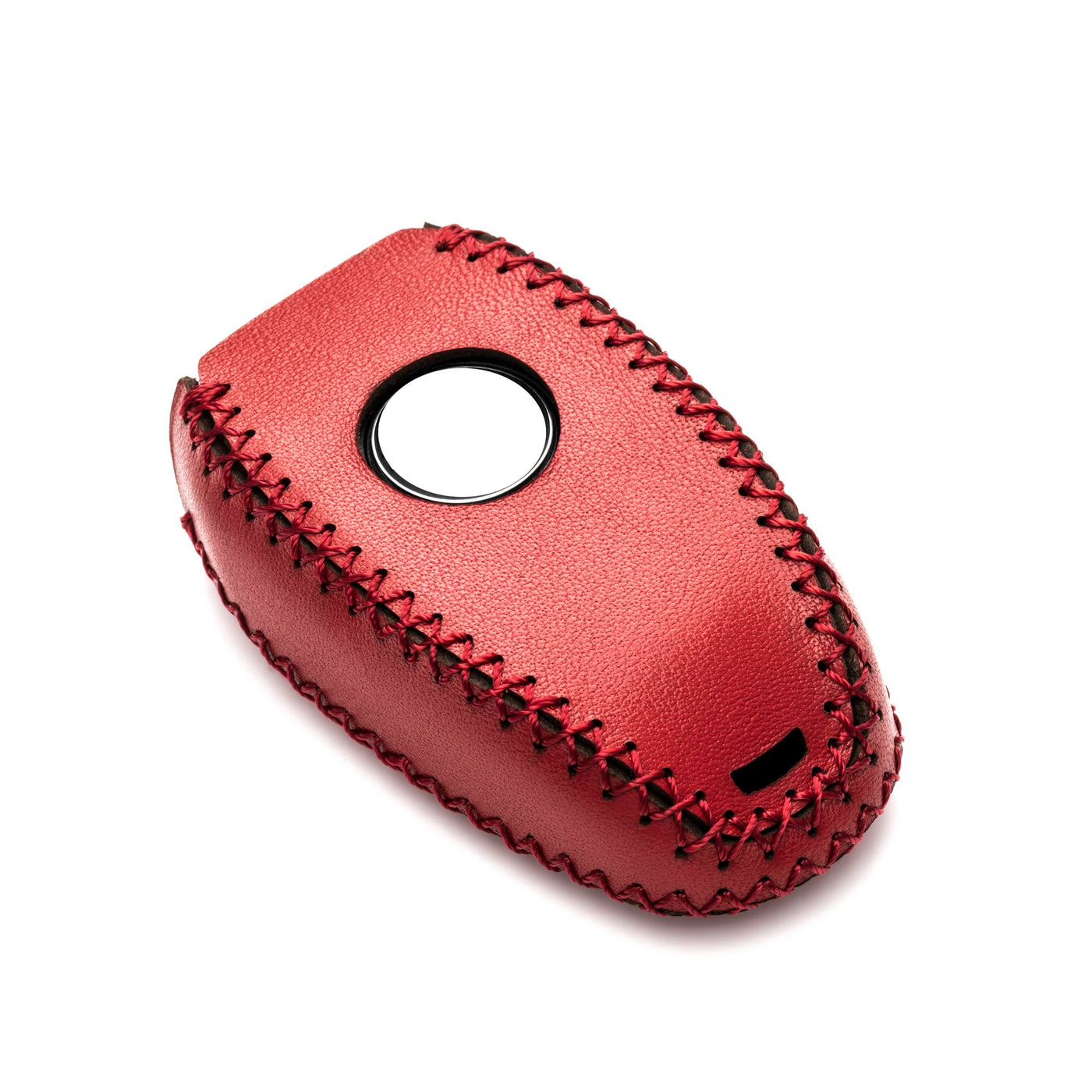 Q: What materials is the key fob case made from?A: This key fob case is made from 100% real genuine premium cowhide leather, ensuring both durability and a stylish appearance. Its high-quality material provides excellent protection against scratches and wear.
