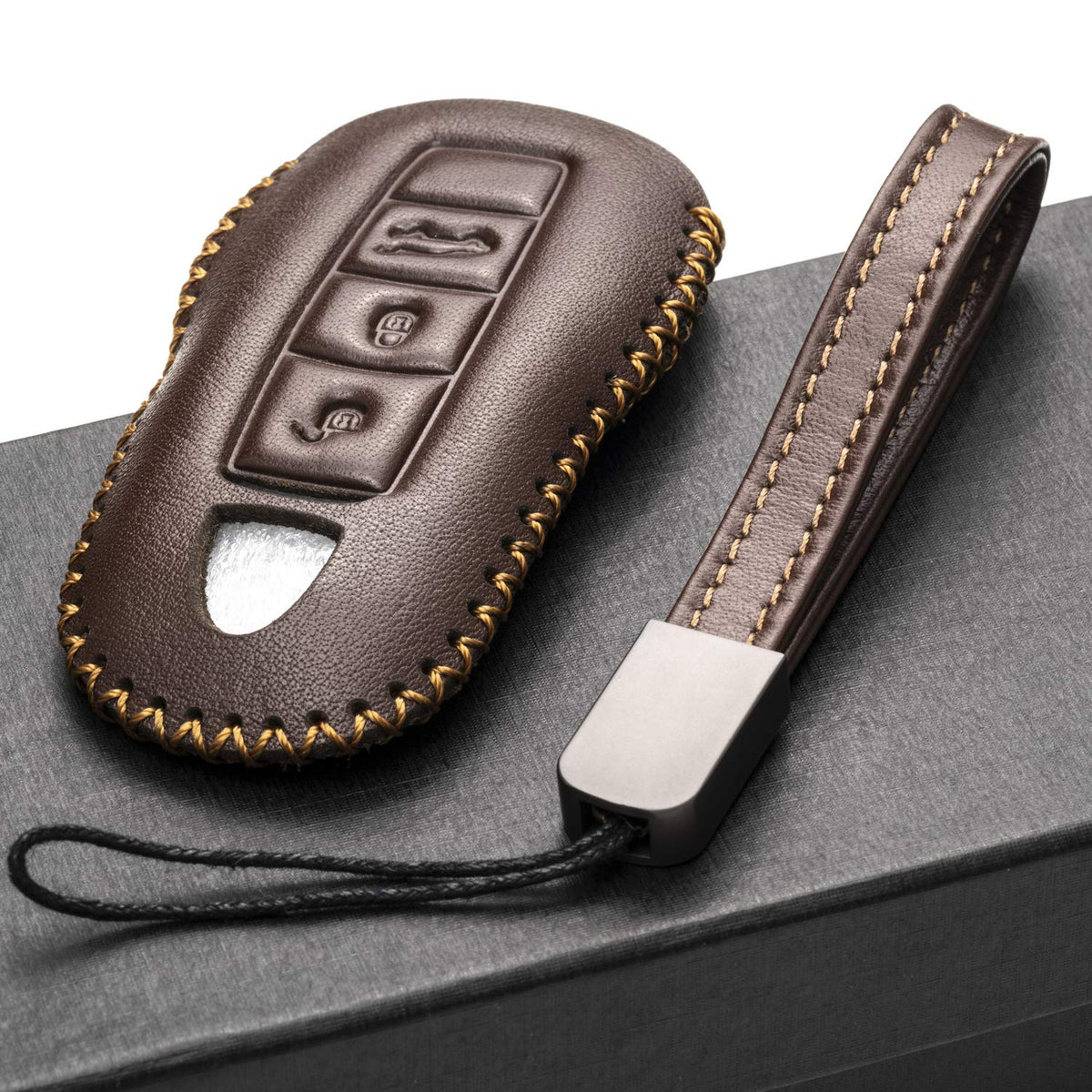 Vitodeco Genuine Leather Smart Key Fob Case with Leather Key Strap Compatible for Porsche 718, Porsche 911, Porsche Panamera, Po