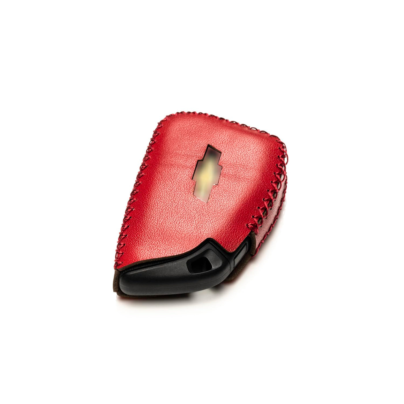 Vitodeco Genuine Leather Smart Key Fob Case With Leather Key Strap Compatible With Chevrolet Suburban 2024, Chevrolet Tahoe 2024, Chevrolet Silverado 2024 (4-Button, Red)