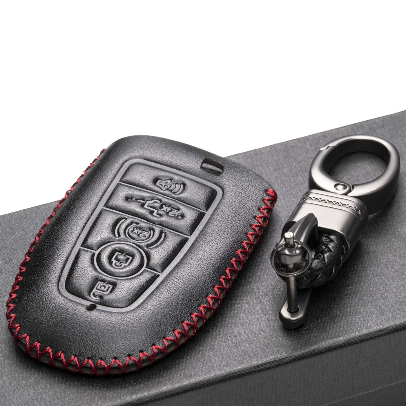 Weight: 3 OZ Material: 100% Real Genuine Leather Package Included: 1 X Leather Key Case, and 1 X Key Chain. (Note: Key Fob is not included) Compatible for Ford Escape 2019-2025, Bronco 2021-2025, Explorer 2019-2025, Edge 2017-2025, Expedition 2019-2025, Mustang 2021-2025, Fob F150 2017 - 2025, Ford Fusion 2017-2020 and more models with 5-Button Smart Key Fob This Leather key case by Vitodeco is the perfect way to provide full protection and fashion to the smart key of your vehicle. It is constructed from durable, high quality materials, with vibrant colors that are easily cleaned with soap and water.