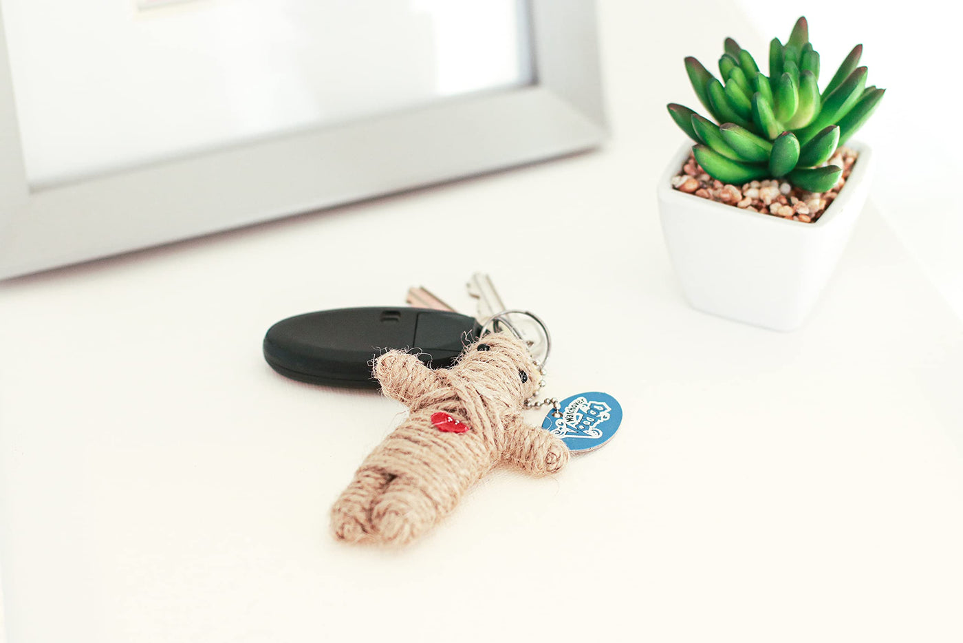 Q: Is the Watchover Voodoo Keychain suitable for gifting?A: Absolutely! The handcrafted nature and positive message of the Watchover Voodoo Keychain make it an ideal gift for friends, family, or anyone who could use a little extra positivity in their life.