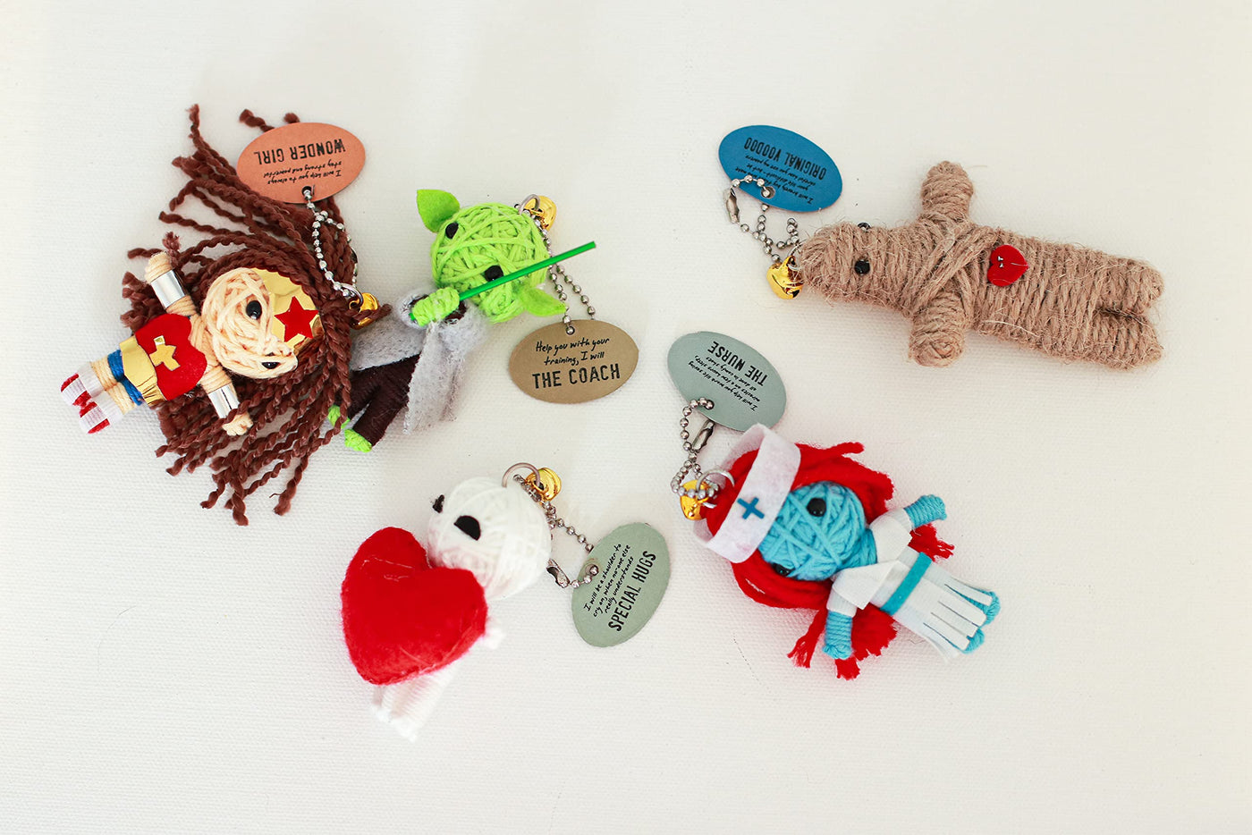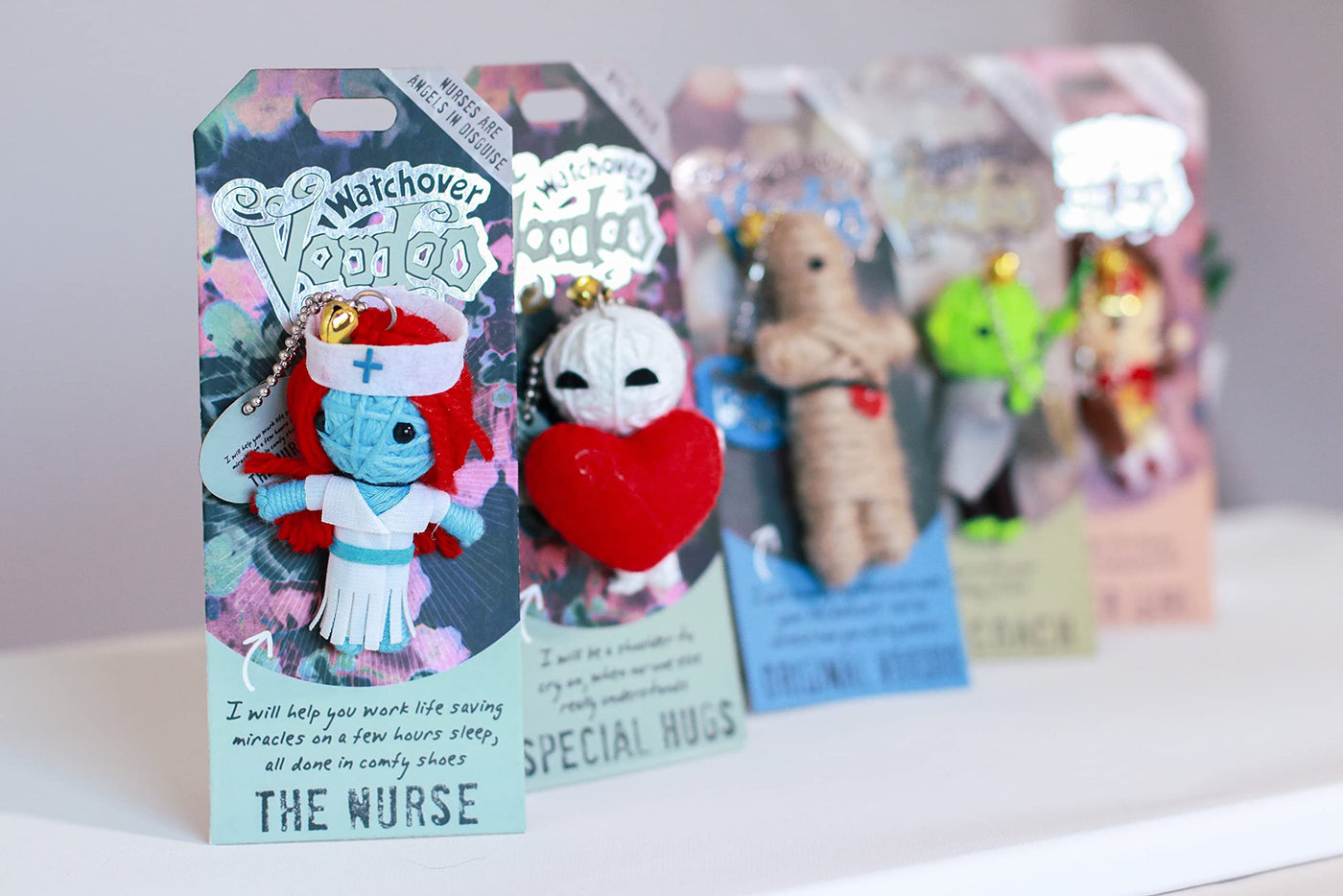 Watchover Voodoo dolls are not about dark spells or eerie curses. Instead, each of these dolls carry a thoughtful message of comfort and protection with a bit of quirkiness, edginess, and a whole lot of personality. They are perfect for collecting, gifting, or simply adding a unique touch wherever you go. They are more than just dolls — they're messengers of healing and symbols of happiness when kindness prevails. The doll dimensions are approximately 3.5' x 2.5' x 1.25' (5' when hanging). The packaging dimensions are 6.5' x 2.75'.