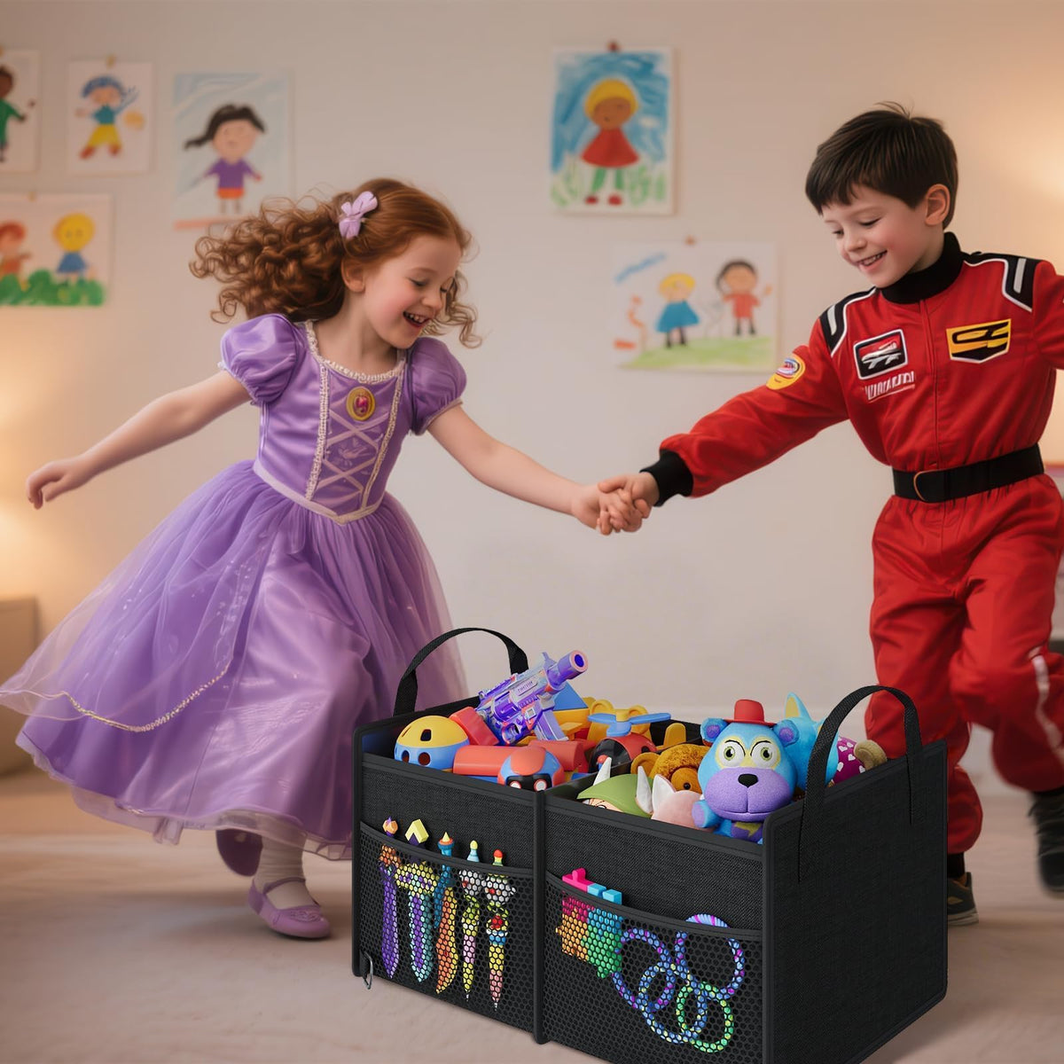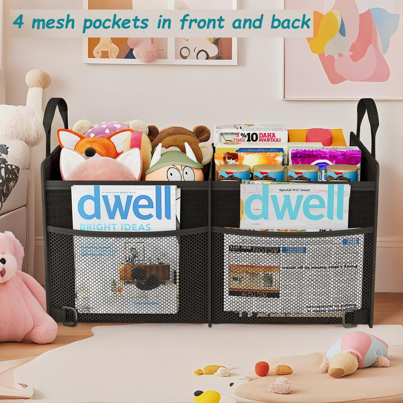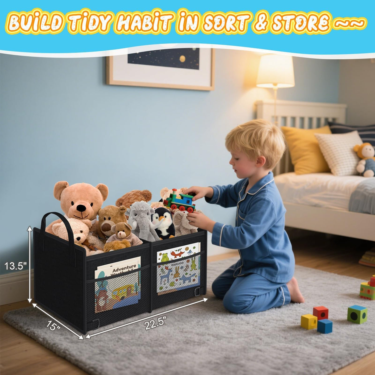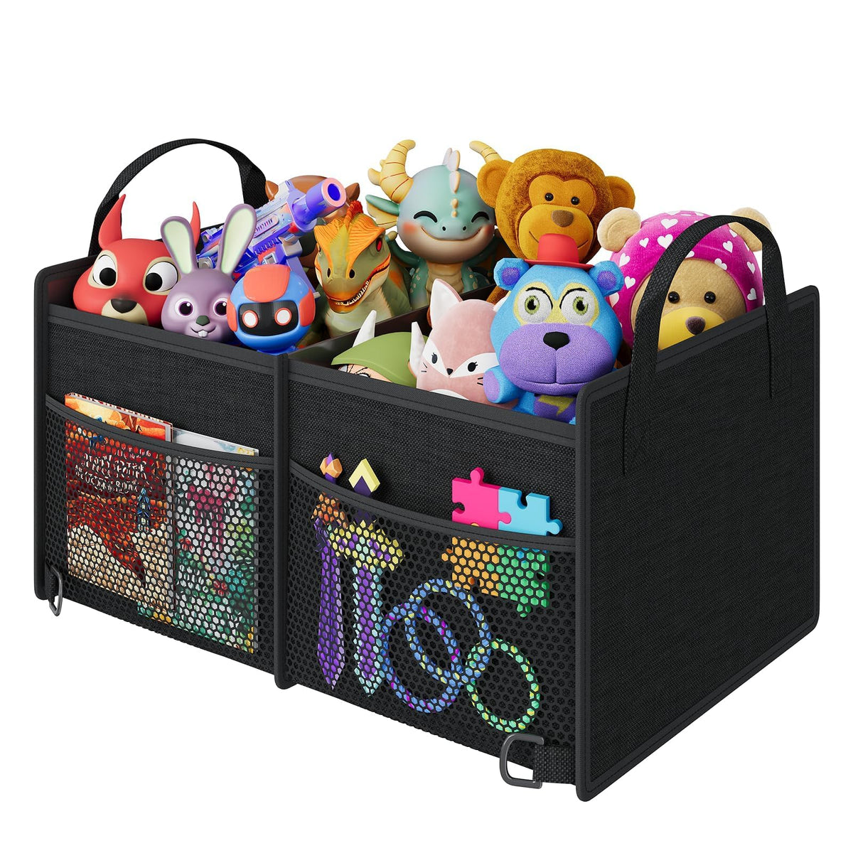 Secure & Stable Trunk Organizer: Reinforced PP honeycomb panels, maintaining stability even when completely empty. Rest assured your grocery won't get crushed-2 adjustable securing straps keep items from shifting or tipping during drives. Spacious Storage: With 2 large compartments and 4 extra mesh pockets, this car trunk organizer provides ample space to neatly store groceries, tools, sports equipment, snack. Keep your car trunk clutter-free and organized on every trip. Strong Durable And Waterproof : Car trunk organizer made of Strong Durable Oxford Polyester with extra stitching and a solid 3-layer waterproof and breathable material. wash it directly with water after dirty. Will last a long time with repeated use. Easy to Use and Collapsible Design: When not in use, the trunk storage organizer can be folded to save space. You can just open it to place grocery item before your trip. What you get: 22.5(L)*15(D)*13.5(H) inches car trunk organizer with packet. Fits all vehicles, such as truck, suv,auto,van, car ,and so on.