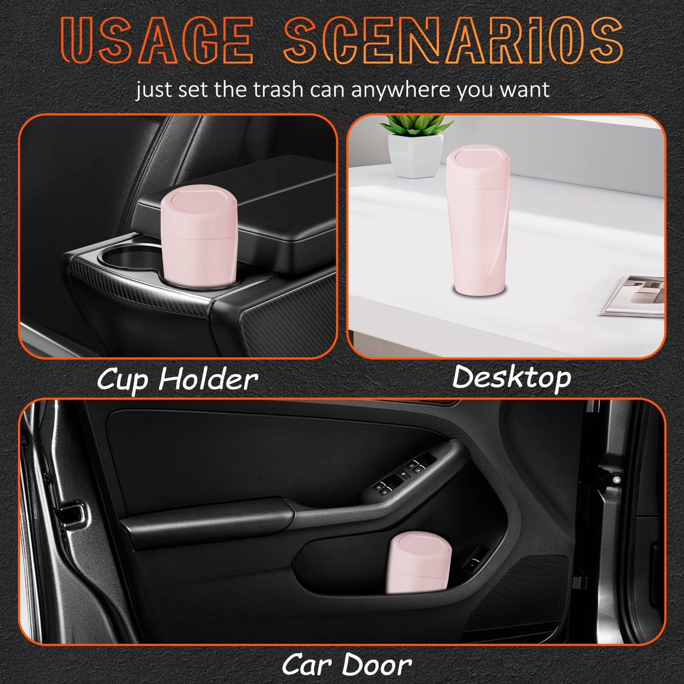 xiaoniu 2Pack Mini Car Trash Can pink Our Stylish Mini Trash Cans Are Perfect For Drivers To Mount In Their Car. Easily Solve The Habit Of Littering In The Car, And Keep Your Car Clean And Beautiful At All Times. Sometimes When Driving, If You Want To Throw Away The Chewing Gum, Cigarettes, Tissues Or Packaging Bags In Your Hand, You Can Put Them In This Mini Trash Can. Avoid Cigarette Butts Causing Fires Or Causing Traffic Accidents, Etc.