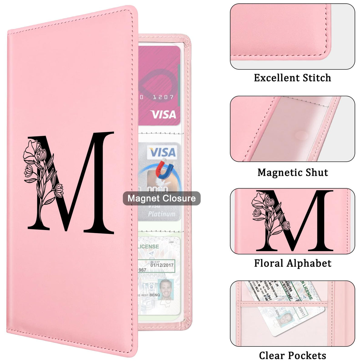 Yeecase Car Registration And Insurance Holder, Car Document Holder With Closure, Pink With Letters Wallet Case Auto Vehicle Car