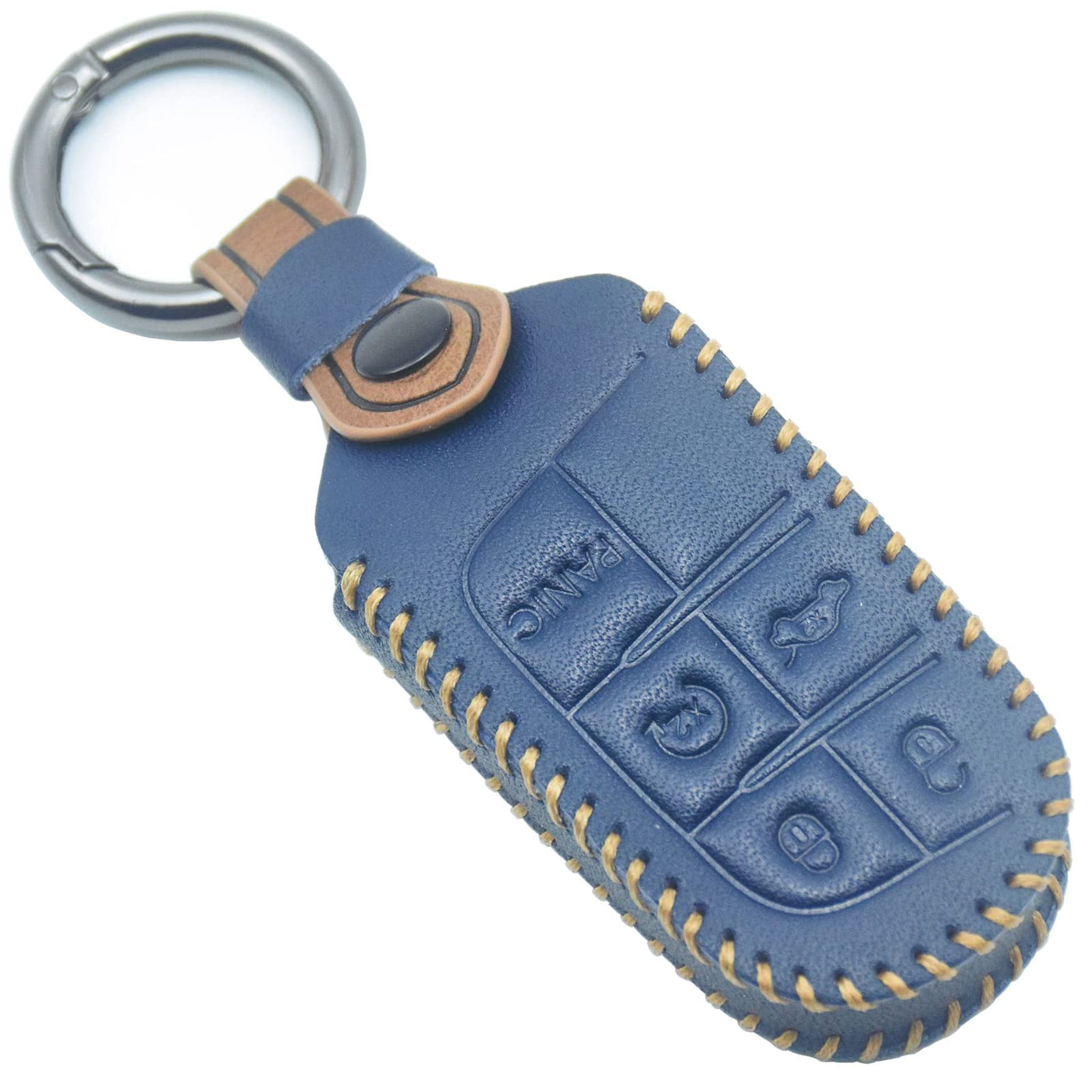 Yubomt For Jeep Key Fob Cover,Genuine Leather Key Case For Jeep Grand Cherokee Chrysler 200 300C Renegade Compass Dodge Journey Charger Challenger Durango Accessories,Blue