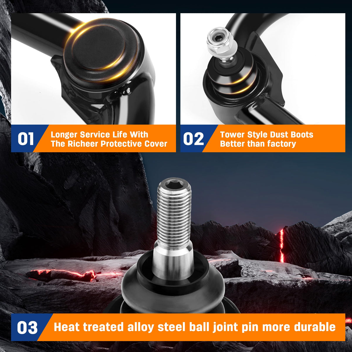 2-4 Front Upper Control Arms For 2004-2024 F150 with Ball Joint, 2PCS Adaption 2-4 Lift Suspension Kit Adjustable Control Ar