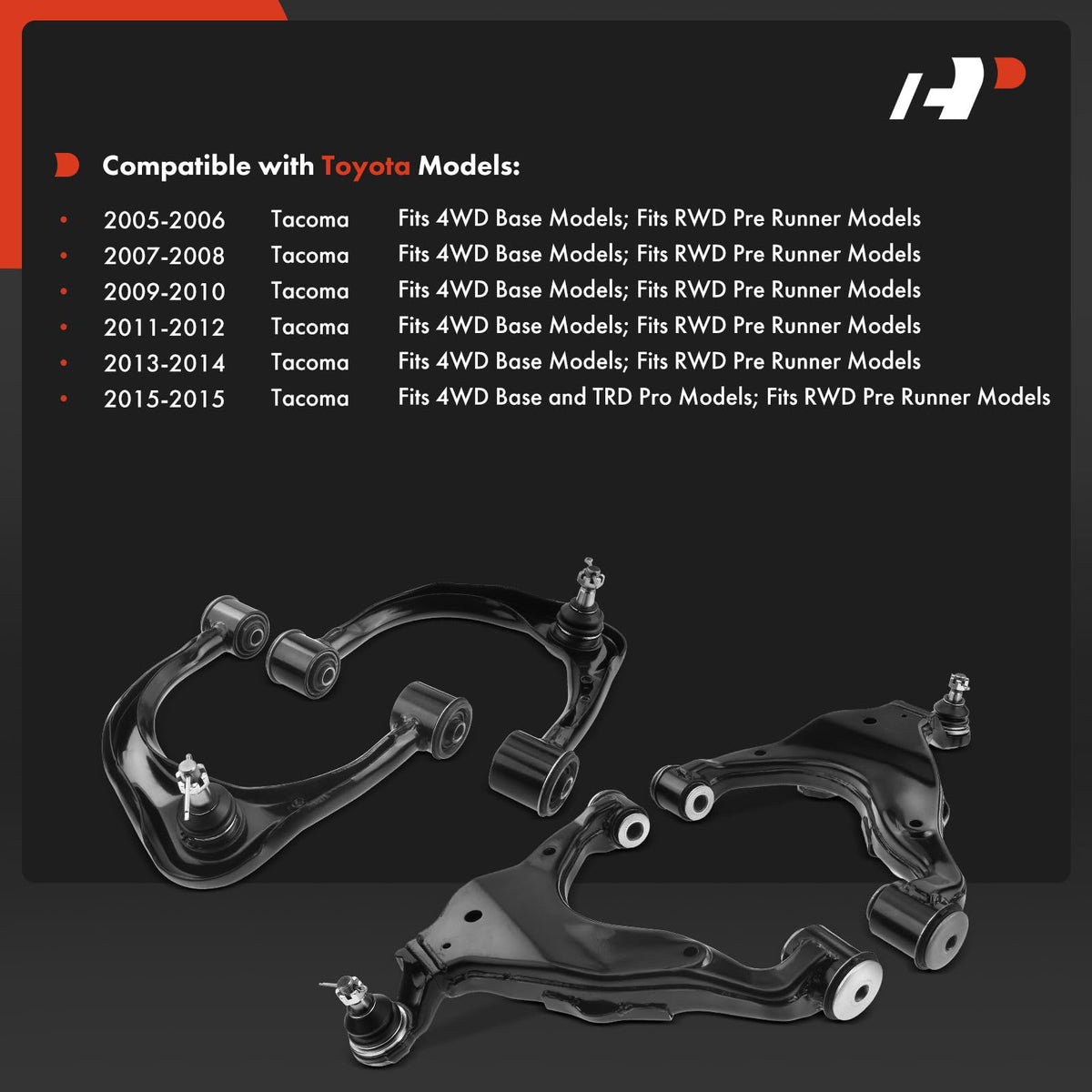 A-Premium Set of 4, Front Upper & Lower Control Arm Kit, with Ball Joint & Bushing, Compatible with Toyota Tacoma 2005-2015