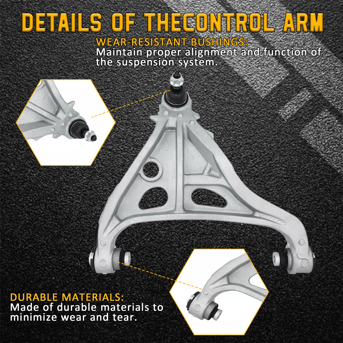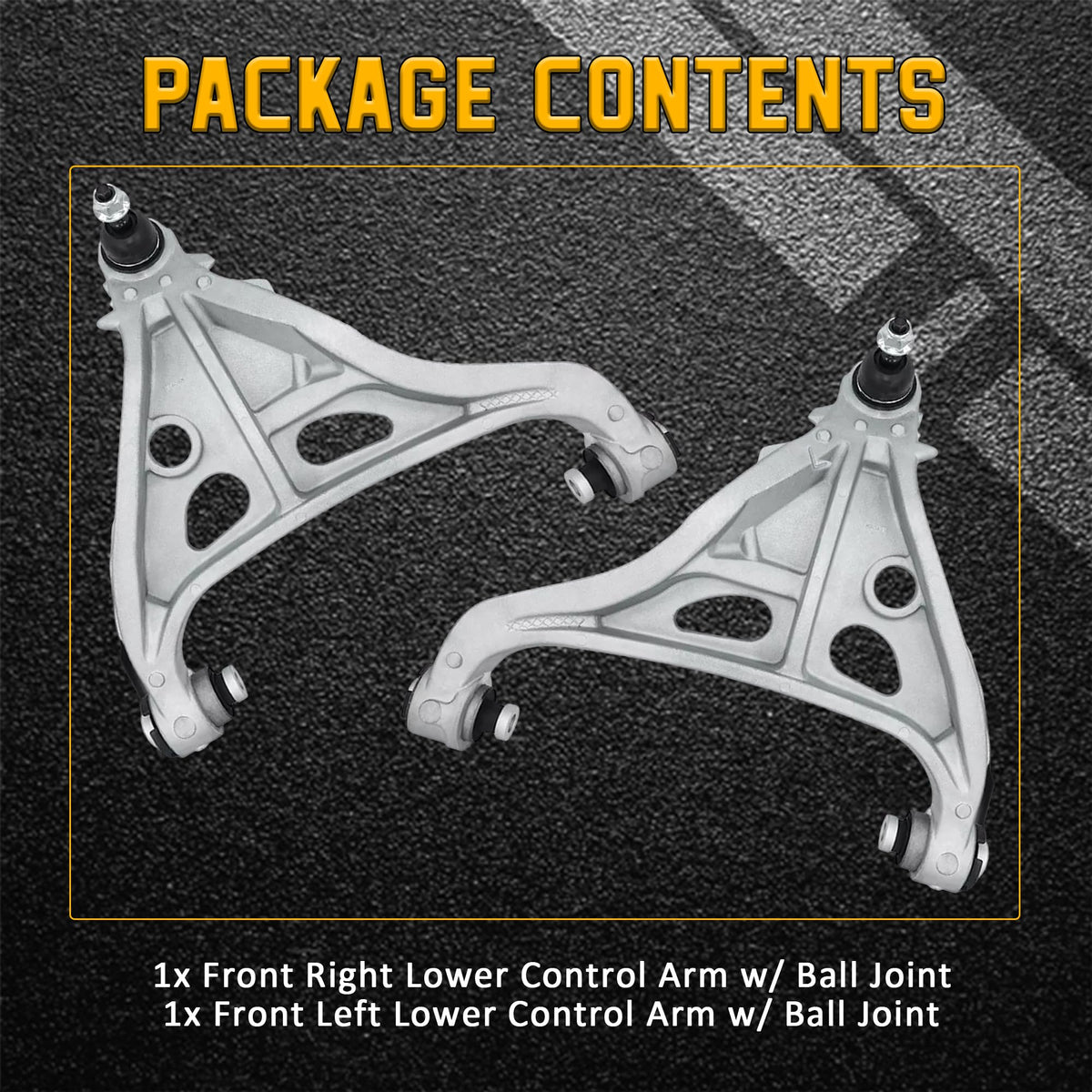 COMPATIBLE WITH: 2004-2008 For Ford F150, 2006-2008 For Lincoln Mark LT | Part Number: K80401, K80403, CMK80401, CMK80403, 520-391, 520-392, 512-01399R, 512-01400L, 7L3Z3078C, 7L3Z3078D, 7L3Z3079C, 7L3Z3079D, 4L3Z3079CA, 4L3Z3078CA, K80402, K80404 | Package Includes: (1) Front Driver Side Lower Control Arm with Ball Joint, (1) Front Passenger Side Lower Control Arm with Ball Joint | Warranty: Each product has a 12-month warranty. We try to provide quality products and service to our customers. | Note: Please check detailed fitment information with the Product description, make sure whether the control arm kit fits your car before placing order.