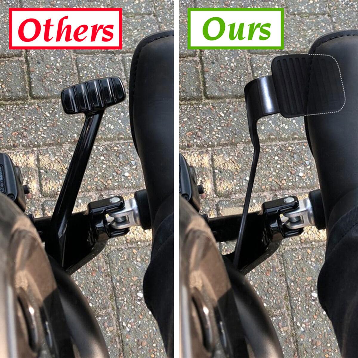 Q: What are the advantages of upgrading to this forward control kit?A: Upgrading to this forward control kit provides more breaking power, smoother shifting, and a more natural stopping experience. It eliminates the need to awkwardly rotate your foot while braking, enhancing overall riding control and comfort.