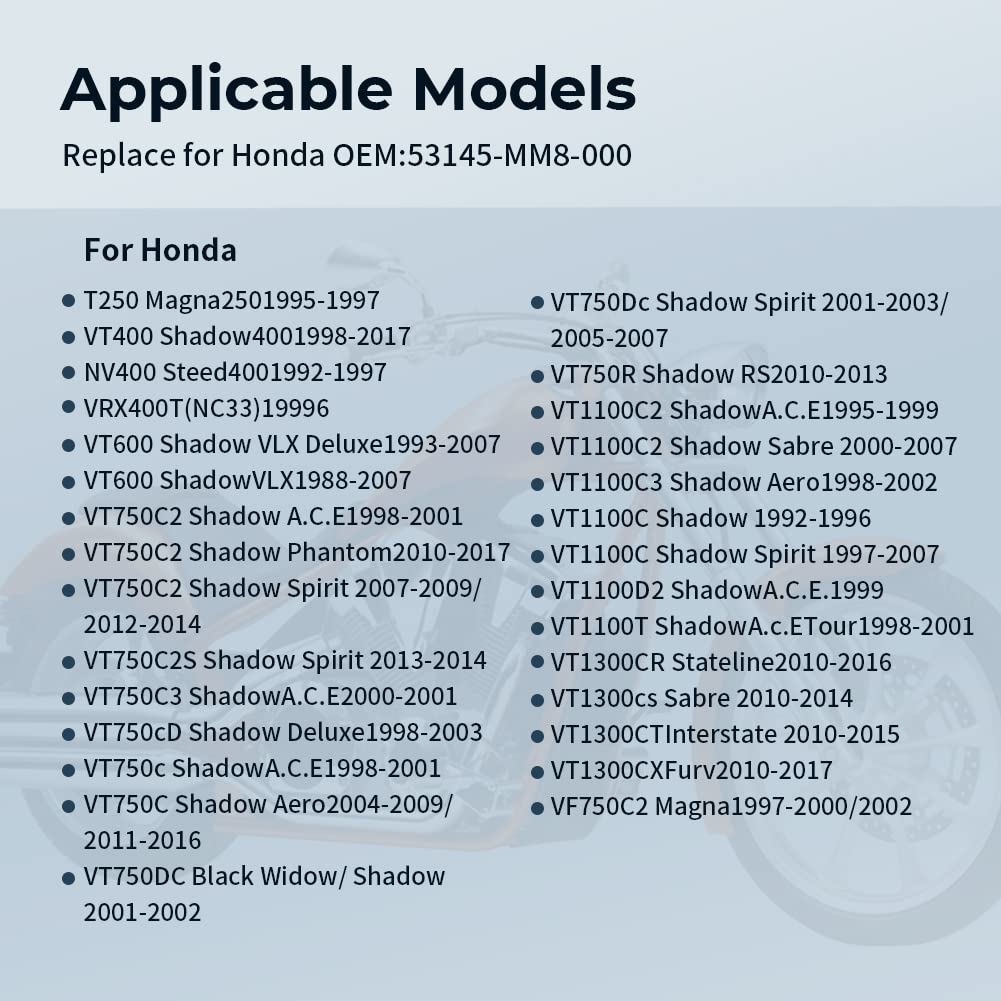 Q: What motorcycles are compatible with the Foruly Grip Throttle Tube?A: The Foruly Grip Throttle Tube is compatible with a variety of Honda motorcycle models, including the VT XVS Shadow series (400, 600, 750, 1100, 1300) and the Magna series, among others. It fits models from 1992 to 2017, ensuring a wide range of applicability.