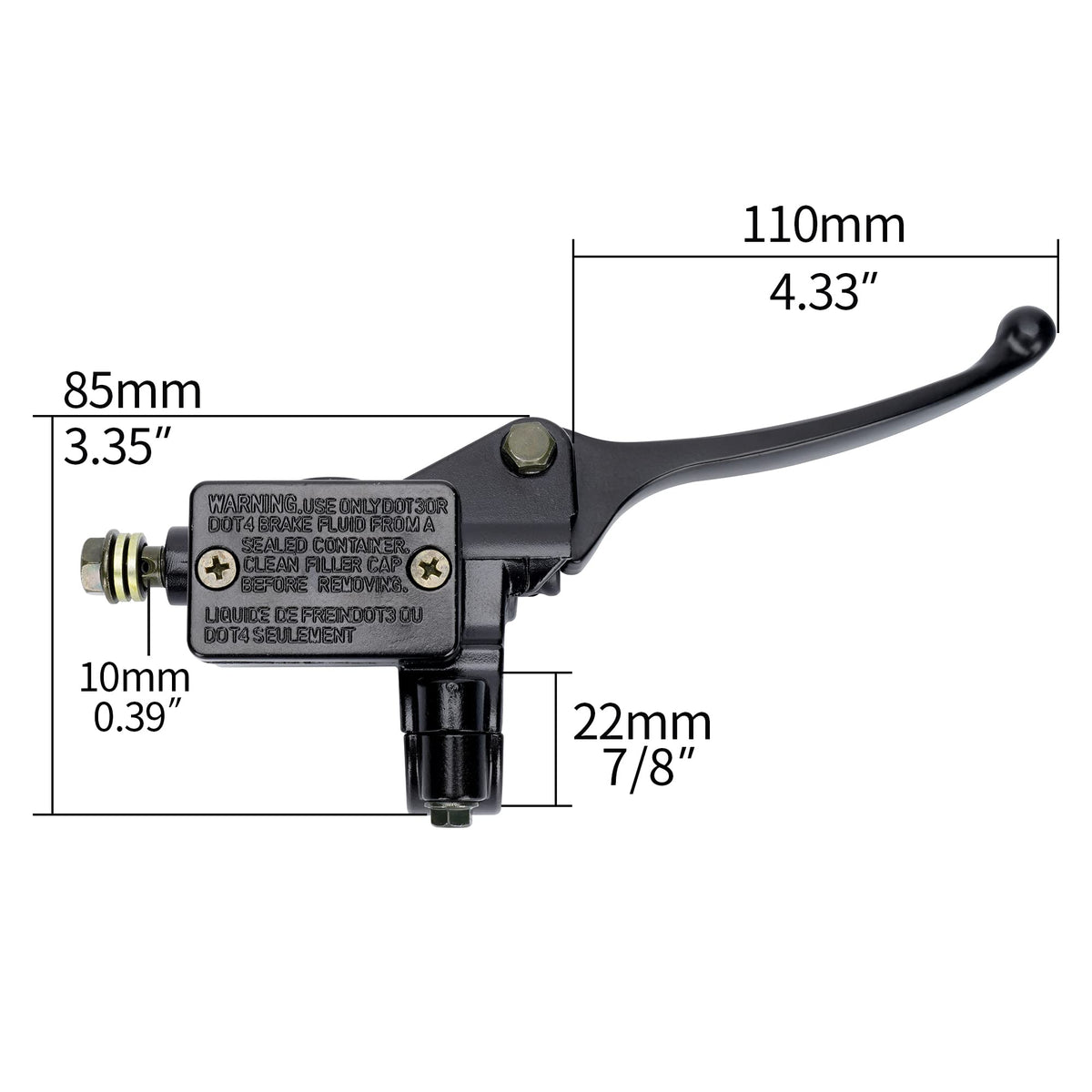 ?A Brake System Upgrade?Equip Your Dirt Pit Bike With Reliable Front Brake Master Cylinder Motorcycle Parts. This Right-Hand Brake System Uses A 10Mm Banjo Bolt And Is Suitable For 7/8' Handlebars | ?Fits Like A Glove?Our Brake Pump Master Cylinder Assembly Fits Most 50, 70, 90, 110, And 125Cc Kid'S Off-Road Bikes. Please Confirm The Measurements Of The Oil Screw Of Your Old Brake Pump Before Purchasing Our Product | ?For Tough Trails?Our Brake Fluid Master Cylinder Is Fitted With A Heavy-Duty Pump Body That Withstands High-Pressure Forces. Its Nitrile Rubber Seals Withstand Heat, Oil, Or Low Temperatures | ?Installation Made Easy?Replace Your Bike'S Master Cylinder Fitting Without Breaking A Sweat. Package Includes 1 X Brake Master Cylinder With Brake Lever, 1X Allen Key | ?A Cut Above The Rest?The Aluminum Brake Caliper Features A Durable Upper Rocker Arm That Doesn’T Break Easily. Comes With A New And Upgraded Perforated Cable Locking Brake System.