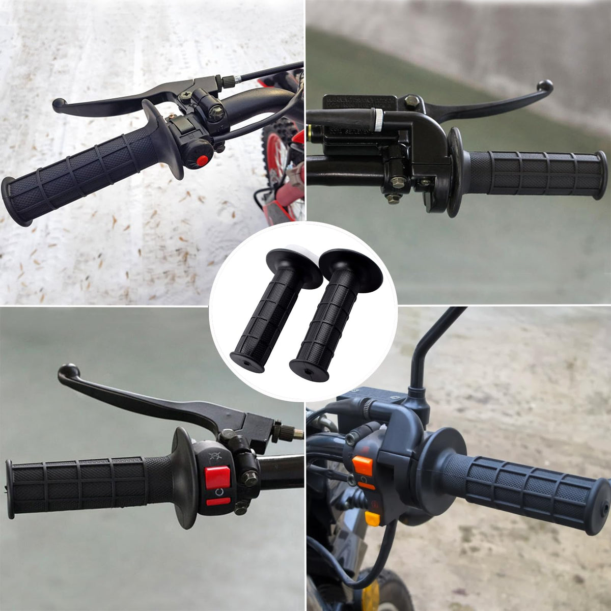 Q: What materials are used in the construction of the throttle grips and clamp?A: The throttle grips are made of durable rubber material that provides a soft touch and comfortable ride, while the throttle clamp is crafted from aluminum alloy, ensuring corrosion resistance and durability.