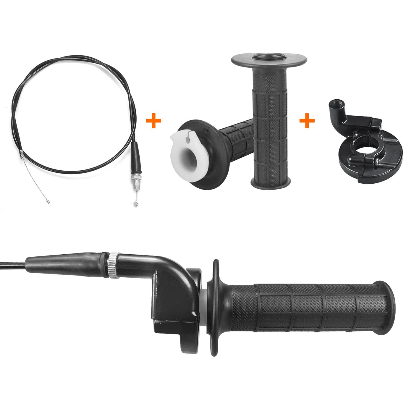 Q: What is included in the HOLATO throttle handle grips package?A: The package includes everything you need for installation: 1 x throttle cable, 1 x left hand grip, 1 x right hand grip, 1 x throttle aluminum clamp, and 1 x on/off kill switch.