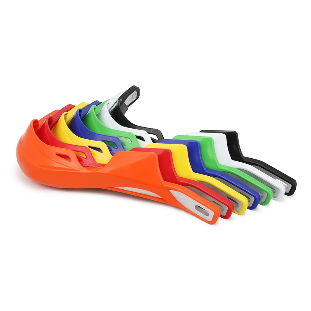 Q: What materials are the handguards made from?A: These handguards are constructed from a combination of PP plastic and aluminum alloy. This combination provides excellent protection against impacts and harsh weather conditions while remaining lightweight.