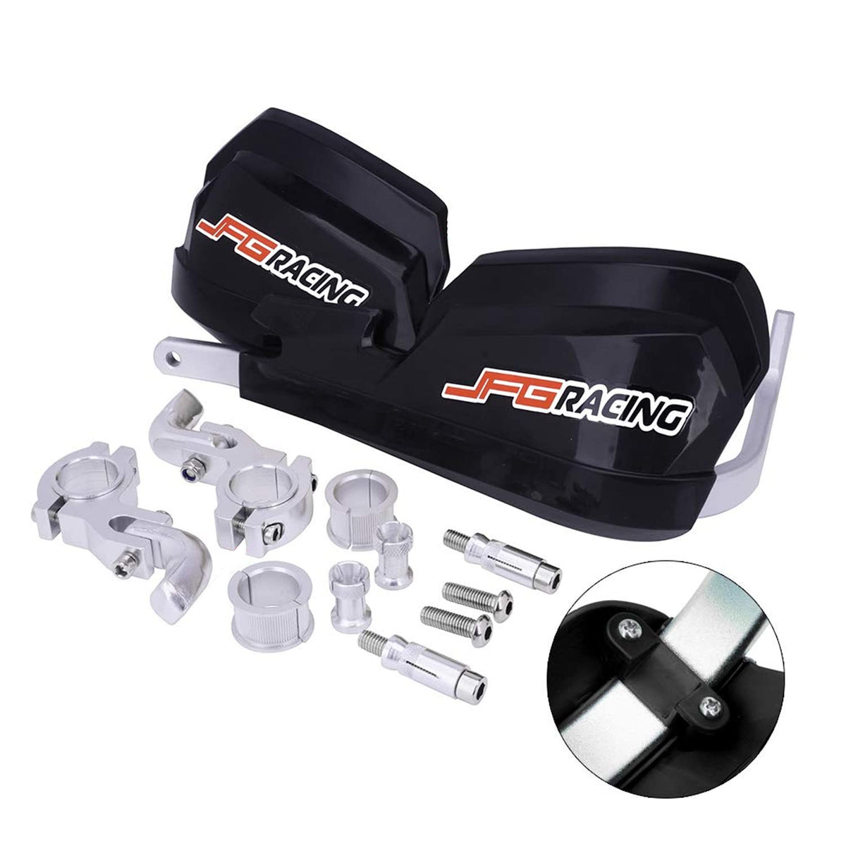 Q: How do I install the JFG RACING Hand Guards?A: Installation is straightforward. Simply insert the handguard spacers into the end of your handlebars and tighten them. As you tighten, the spacers expand inside the handlebars, securing the handguards in place. However, please note that installation instructions are not included.