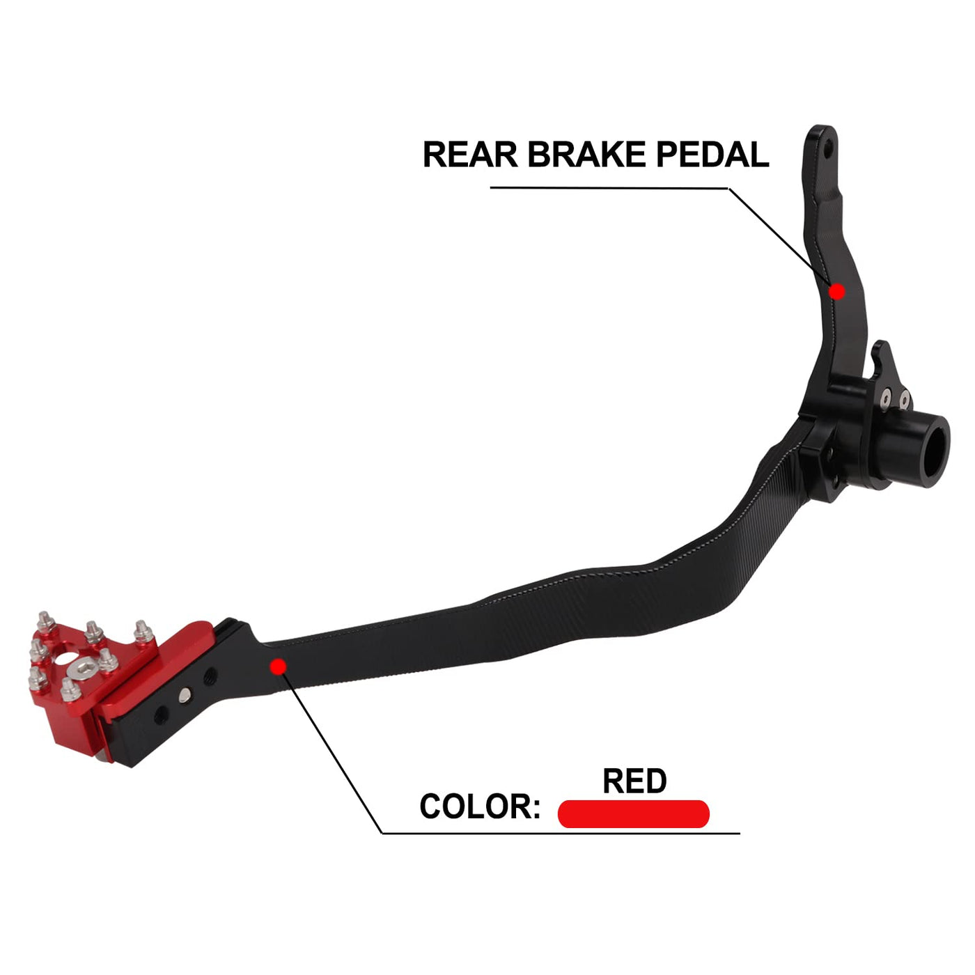 Q: What color options are available for the brake pedal lever?A: The JFG RACING Motorcycle Folding Rear Brake Foot Pedal Lever is available in multiple colors, including red, allowing you to customize your motorcycle's appearance to fit your style.