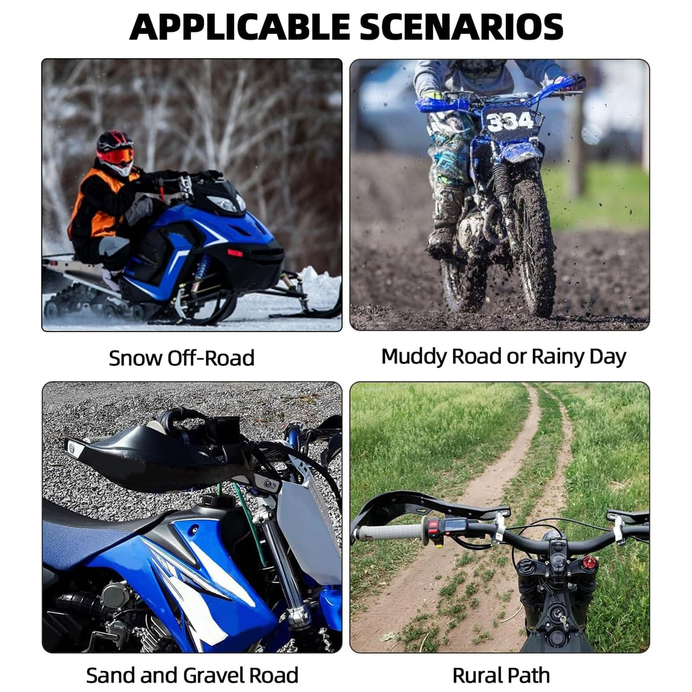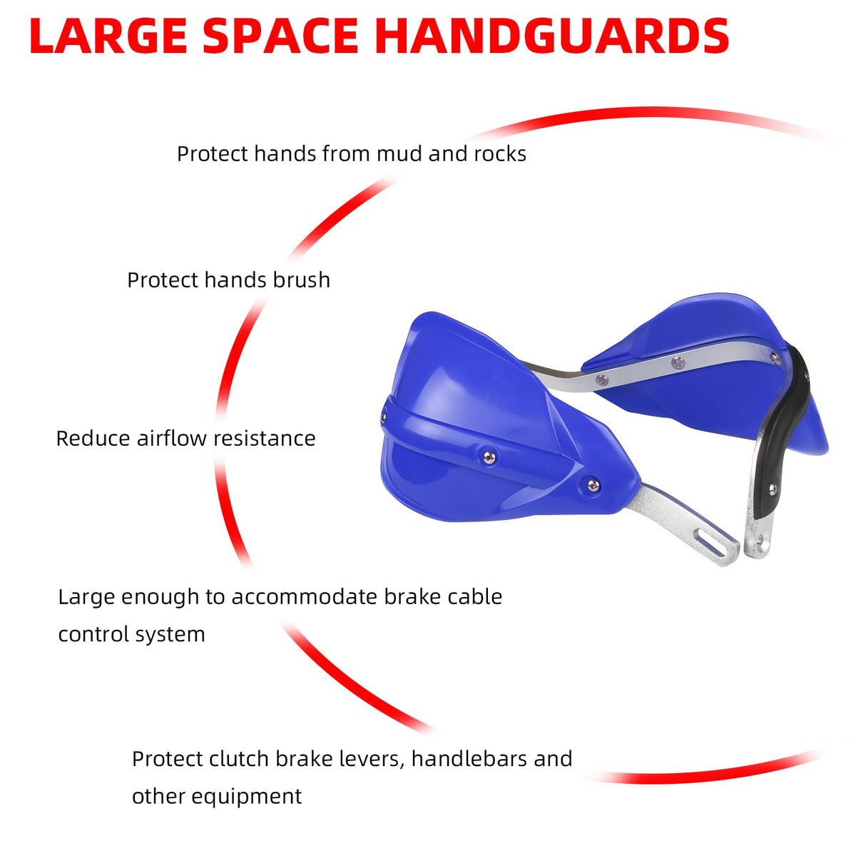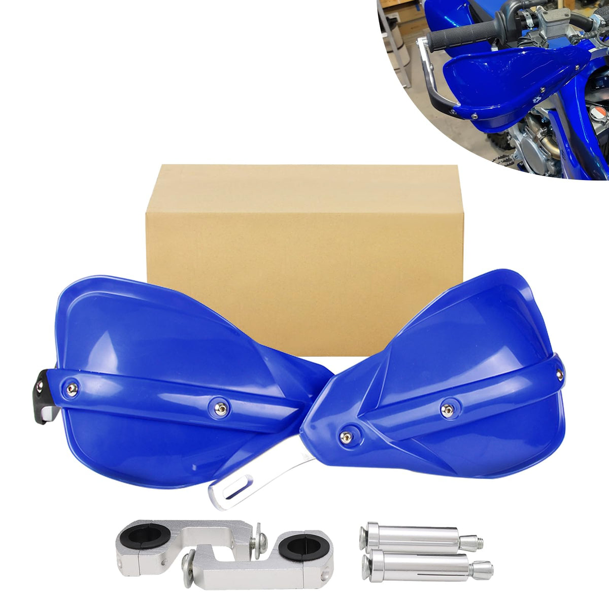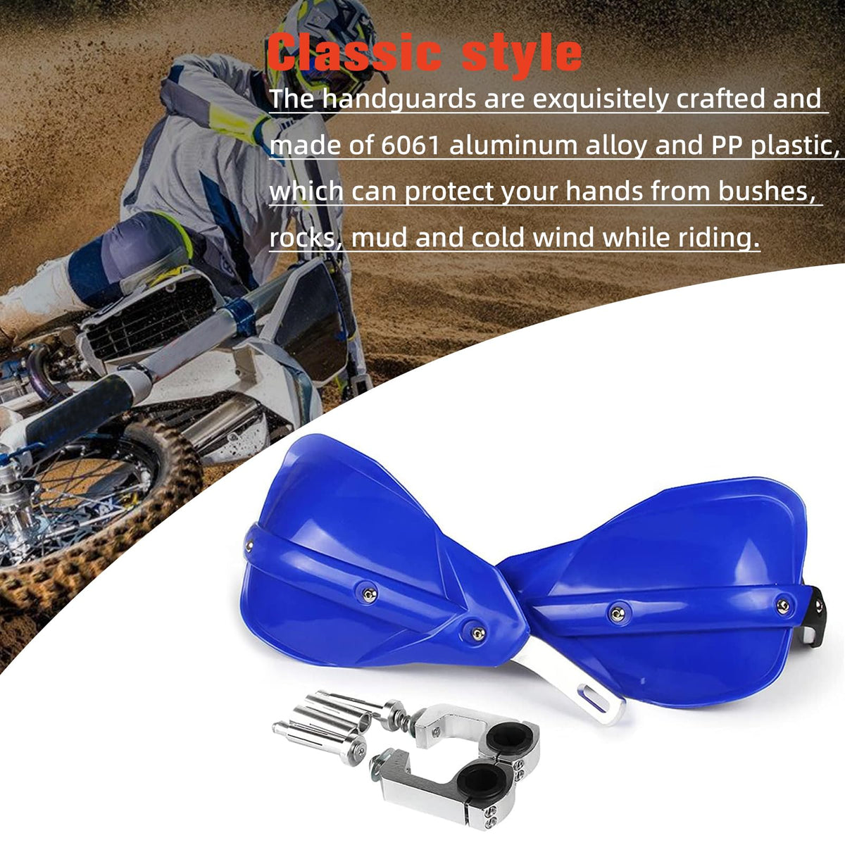 Feature: 100% Brand New, Never Mounted Efficiently Protect Hands While Driving Reduce Your Hands Or Fingers Fatigue Protect Your Hands From Brush, Rocks, Mud And Cold wind With Enough Room For Brake Cables Control And Other Devices Easy To Install Specification: Color:Blue as Pictures Material:PP Plastic and Aluminum Alloy Fitment: Universal Mounting Kits To Fit All Dirt Bikes, Enduro Fit All Handlebars Range 7/8' 22mm and 1 1/8' 28mm. Package Includes: A Set Of Hand Guards And Fitting Kit Installation Instruction NOT Included