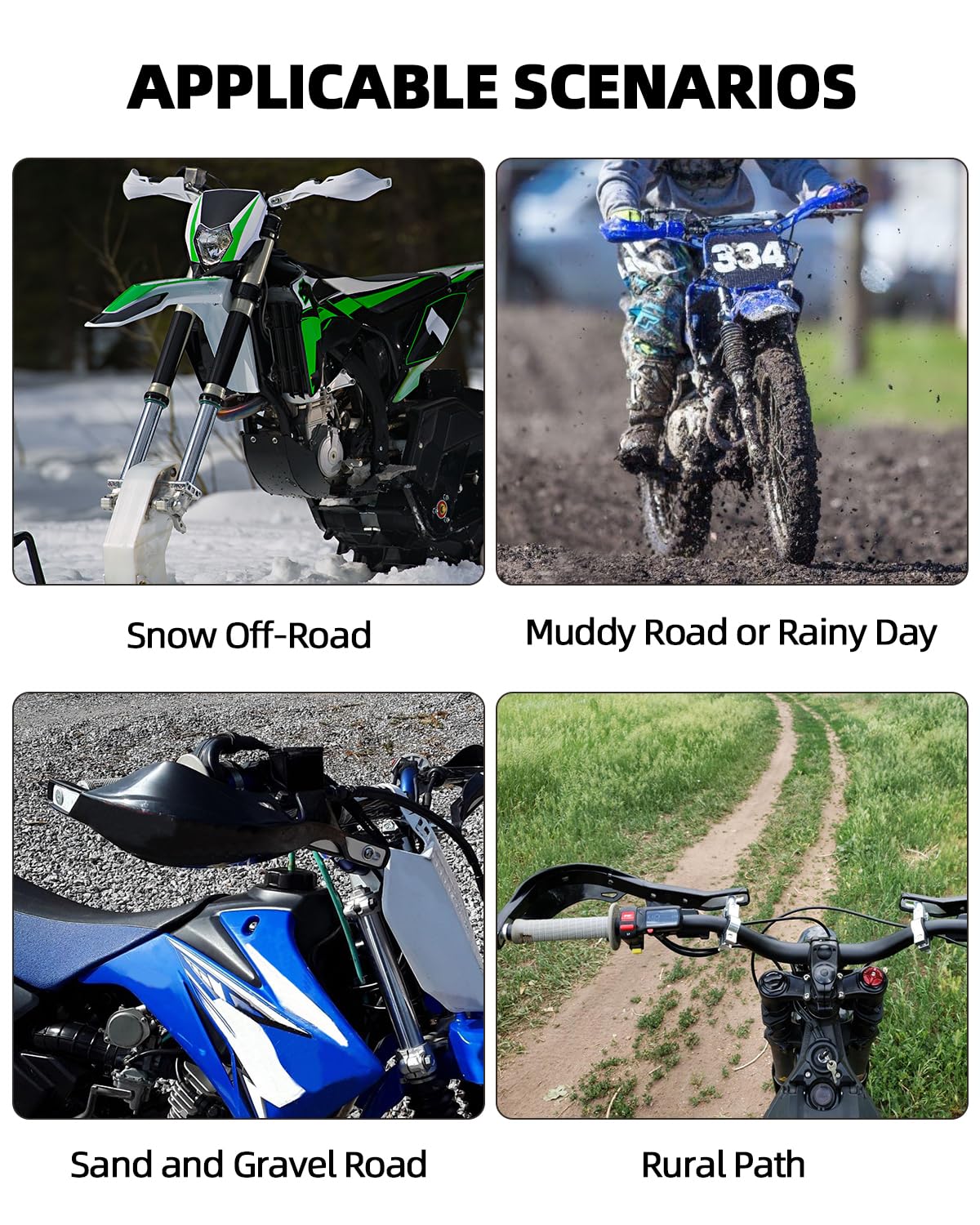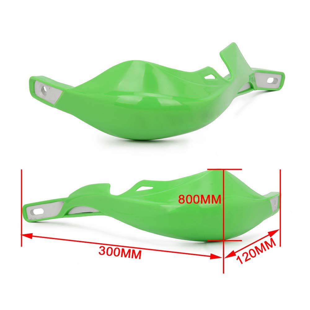 Features: 100% Brand New, Never Mounted Efficiently Protect Hands While Driving Reduce Your Hands Or Fingers Fatigue Protect Your Hands From Brush, Rocks, Mud And Cold wind Easy To Install Specification: Color: Green As Pictures Clamp: Universal Mounting Kits To Fit All Dirt Bikes Material:PP Plastic + Aluminum Alloy Fitment: Fit All Handlebars Range 7/8'' 22mm and 1 1/8'' 28mm.