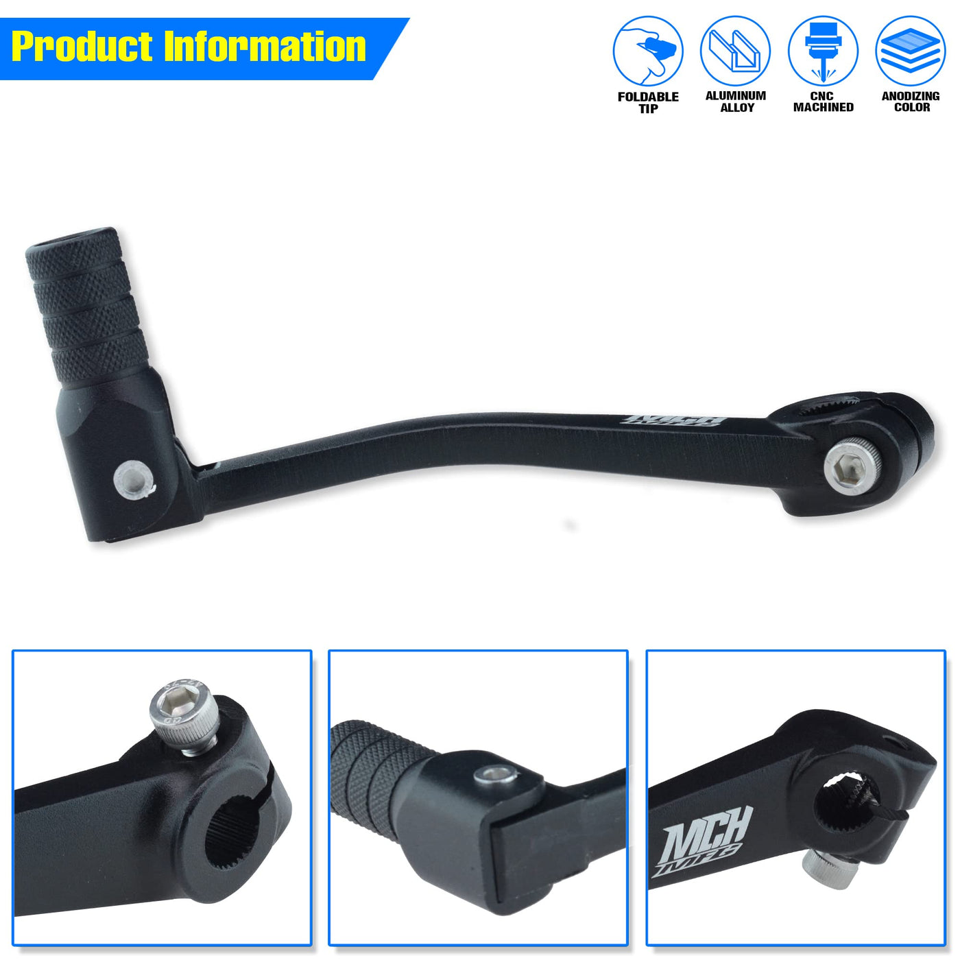 Q: Is this gear shifter compatible with my dirt bike model?A: Yes, the MCHMFG Folding Gear Shifter is designed to fit various models including XR50, XR80, CRF50, and CRF70, accommodating 50cc to 125cc pit dirt bikes and motorcycles.