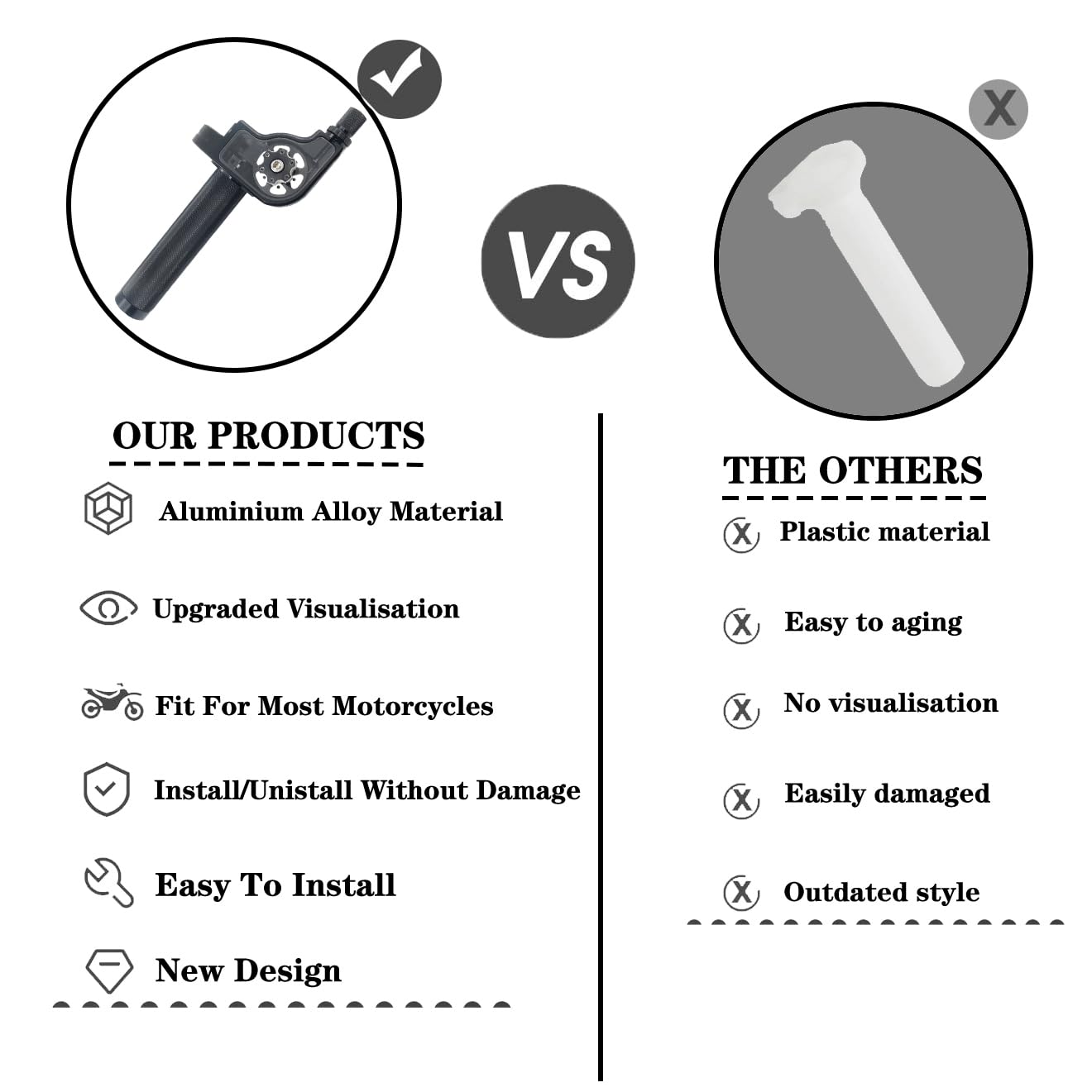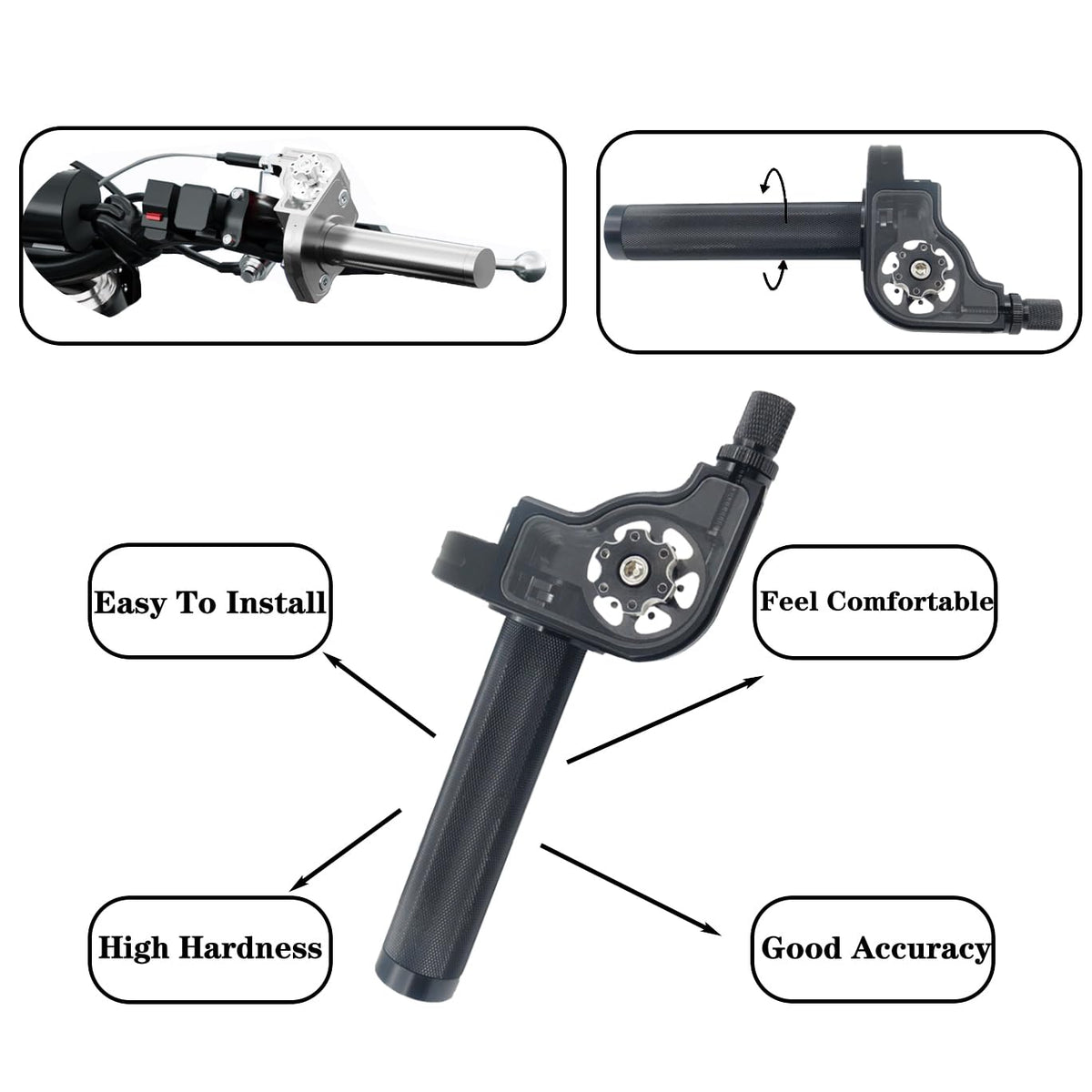 Description: Condition: 100% Brand New, Never Mounted Made With 6061 T-6 Aluminum Alloy Ready Anodized coloration, sharp looking See Through Translucent Top, Knurled Grip Area Ball bearing guide with see-through throttle cable box Adjustable clamps allows you to mount it with your personal preferences. Material: CNC Aluminum Package Included:1* Throttle Grip ,1* throttle cable Fitment: Compatible With Most Motorbike Models - 50cc, 90cc, 110cc,150cc,125cc,140cc,etc. 4-stroke dirt bike/mini bike/pocket bike/pit bike /ATV /Scooter / Go Kart, etc Please double check the pictures for compatibility before purchasing,Instruction of Installation is NOT Included