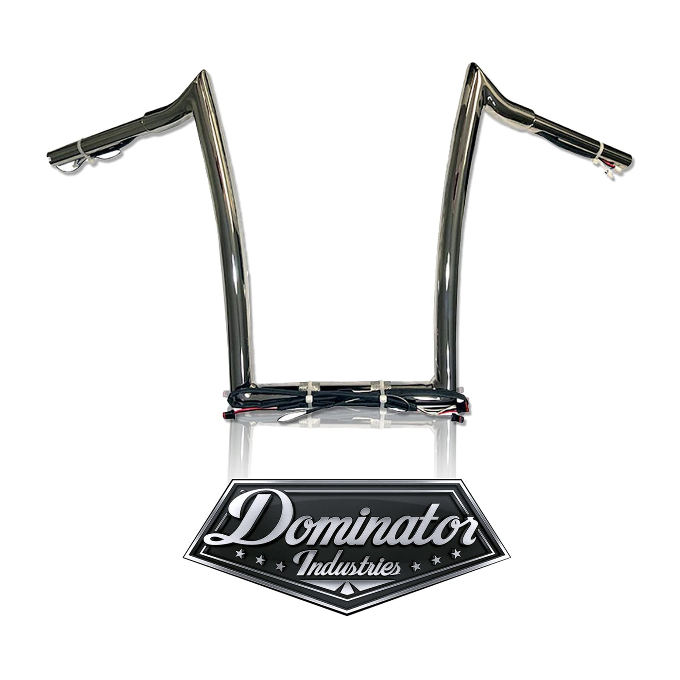 Pre Wired Dominator Industries 1 1/4 Inch Road Glide Meathook Ape Hanger Handlebars, 14 Inch Rise, Chrome For 2015-2022 Harley Road Glides