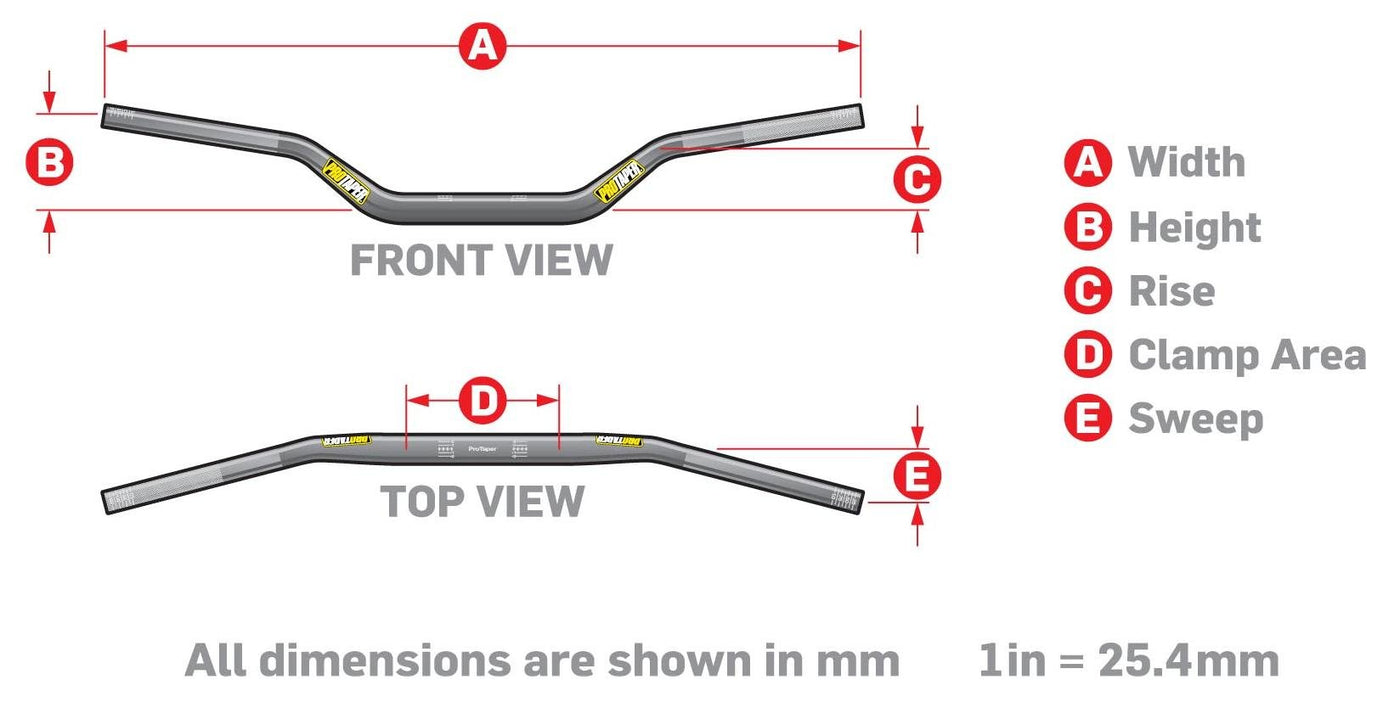 Q: What maintenance do these handlebars require?A: To maintain your Pro Taper Contour Handlebars, regularly check for any signs of wear or damage, especially after intense use. Cleaning them with a gentle soap solution and avoiding harsh chemicals will help preserve the finish and graphics.
