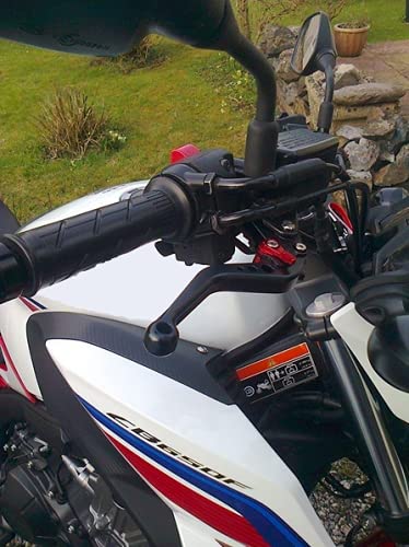 Brand New Clutch and Brake Levers with 6 adjustable positions. Full adjustable and with complete billet construction. Levers are manufactured of billet 6061 T6 aluminum with hard anodized. Precision CNC Machined pivot bore to ensure a perfect fit. 6-position adjuster allows you to tailor your lever reach set-up easily for the most comfort gesture. Direct replacement for stock levers. No modification required! (Some parts or bushing from the original levers may be required to complete the installation) Item Specification Color:Black levers with Red adjusters Length:Short (about 1 inch shorter than the original) Fitment:CBR650F CB650F 2014-2021 NC700 NC750 S/X 2016-2020 Quantity:1 pair