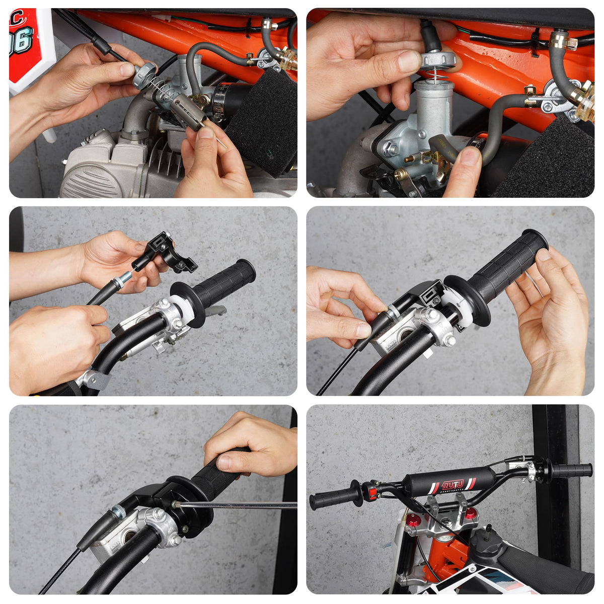 Q: How long is the throttle cable for the mini bike throttle assembly?A: The throttle cable included in the RUTU throttle assembly measures 130cm (51 inches) in length, with a cable moving length of 12.5cm (4.9 inches), making it suitable for most pit dirt bikes and mini bikes with a 7/8 inch handlebar.