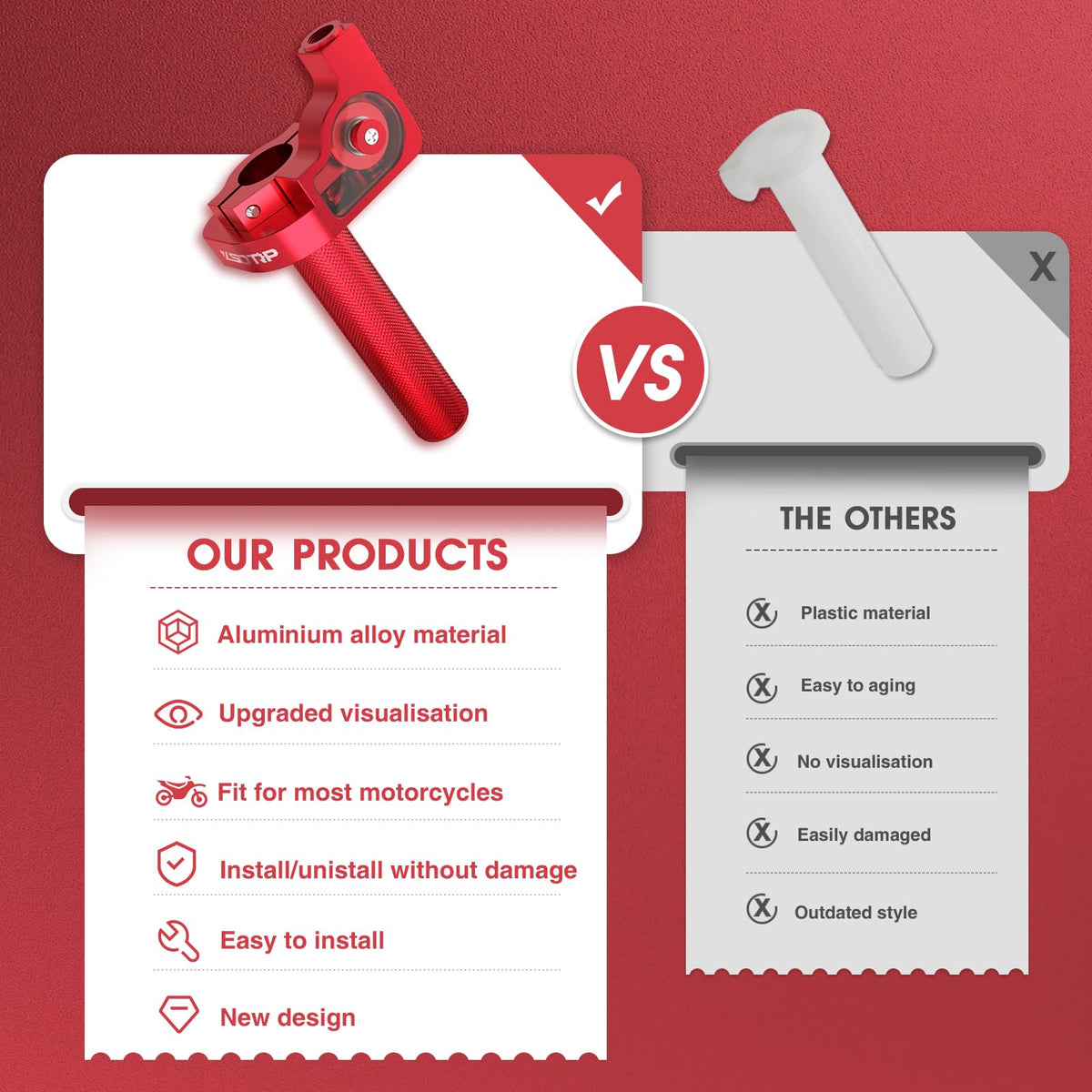 Q: Is the Throttle Grip easy to install?A: Yes, the Throttle Grip is designed for easy installation. However, please note that it does not come with installation instructions. If you need assistance, feel free to contact us for guidance.