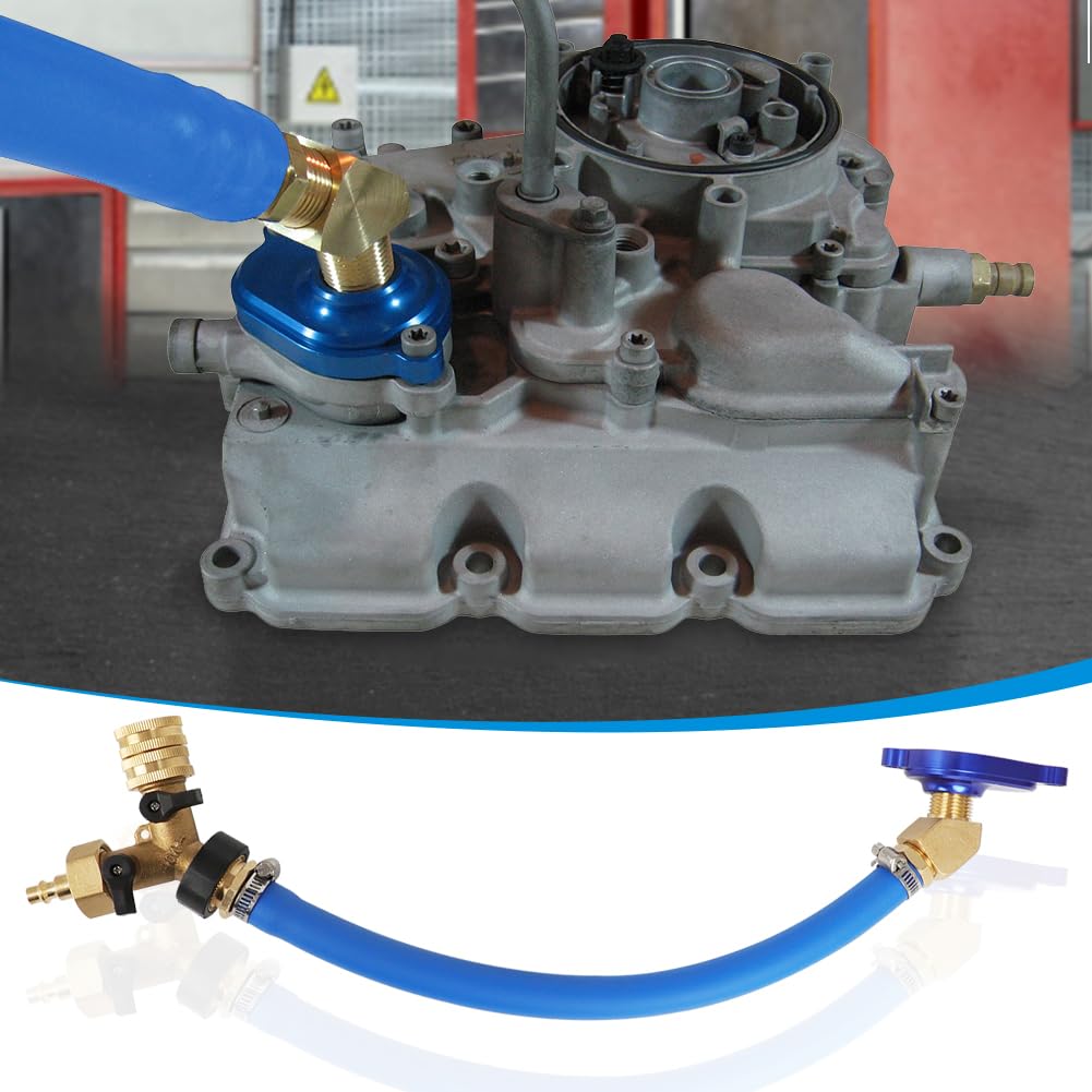 6.0L Oil Cooler Flush Kit With ''T'' Port and Aluminum Anodize Adapter VT365 VT275 replacement for 2003-2010 Ford