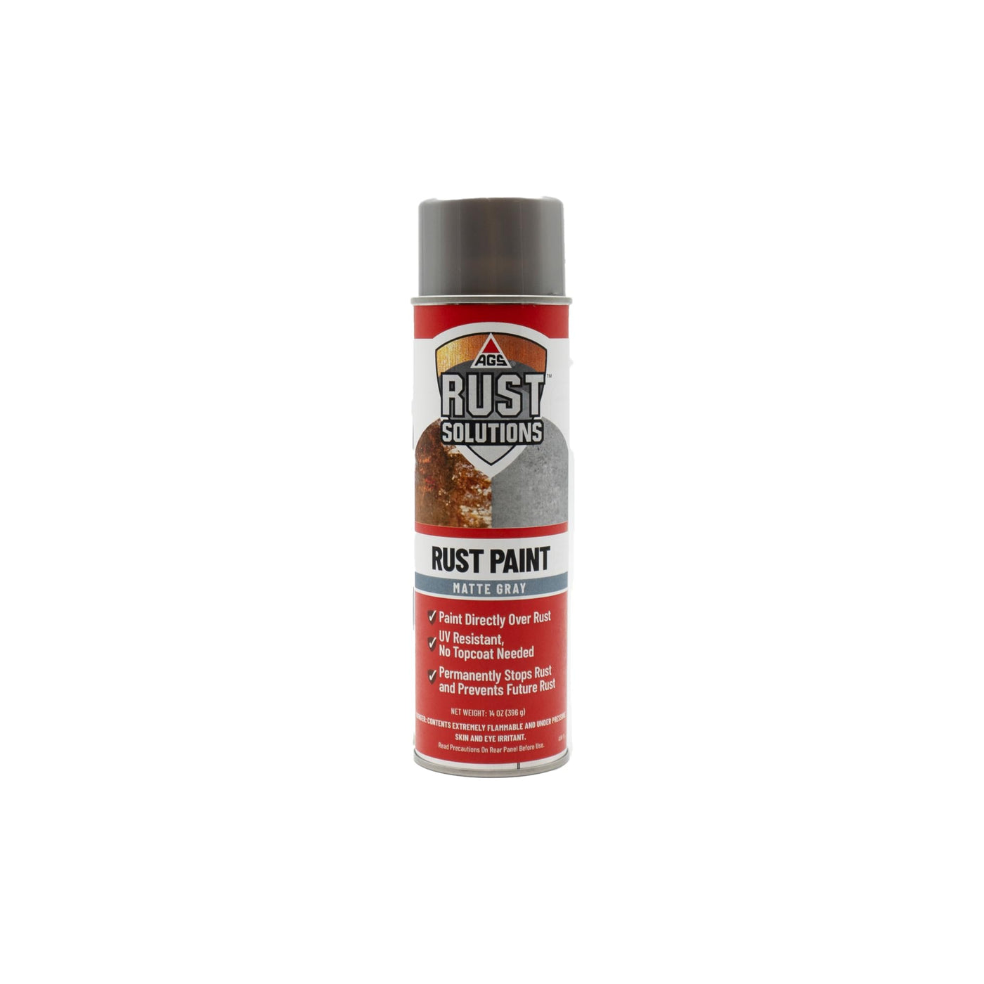Ags Rust Solutions Rust Spray Paint, 14Oz, Durable Matte Grey Finish, Safe For All Surfaces, Eradicate Rust And Ensure Long-Last