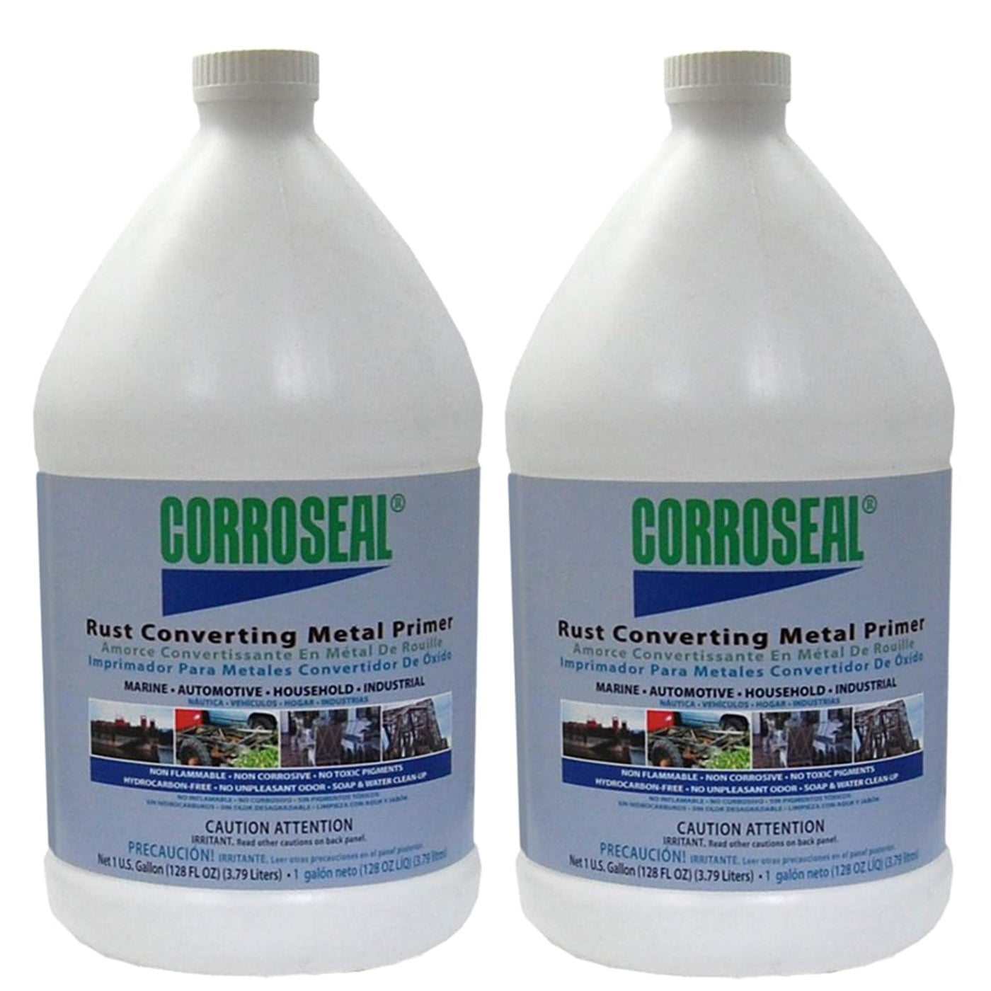 Don't remove rust, convert rust.Corroseal Rust Converter is an elite, industrial strength product for all automotive, machinery, marine, household and industrial rust problems. Through an innovative chemical conversion process, Corroseal Rust Converter converts rust into a stable substance. Prevent further spread of rust and prime the surface with a high quality metal primer at the same time. Corroseal truly provides one step corrosion control. Save time with this rust converter and primer in one, compatible with most topcoat paints. Corroseal is easy to apply, easy to clean-up and non-hazardous. 1 gallon covers approximately 200-250 square feet.
