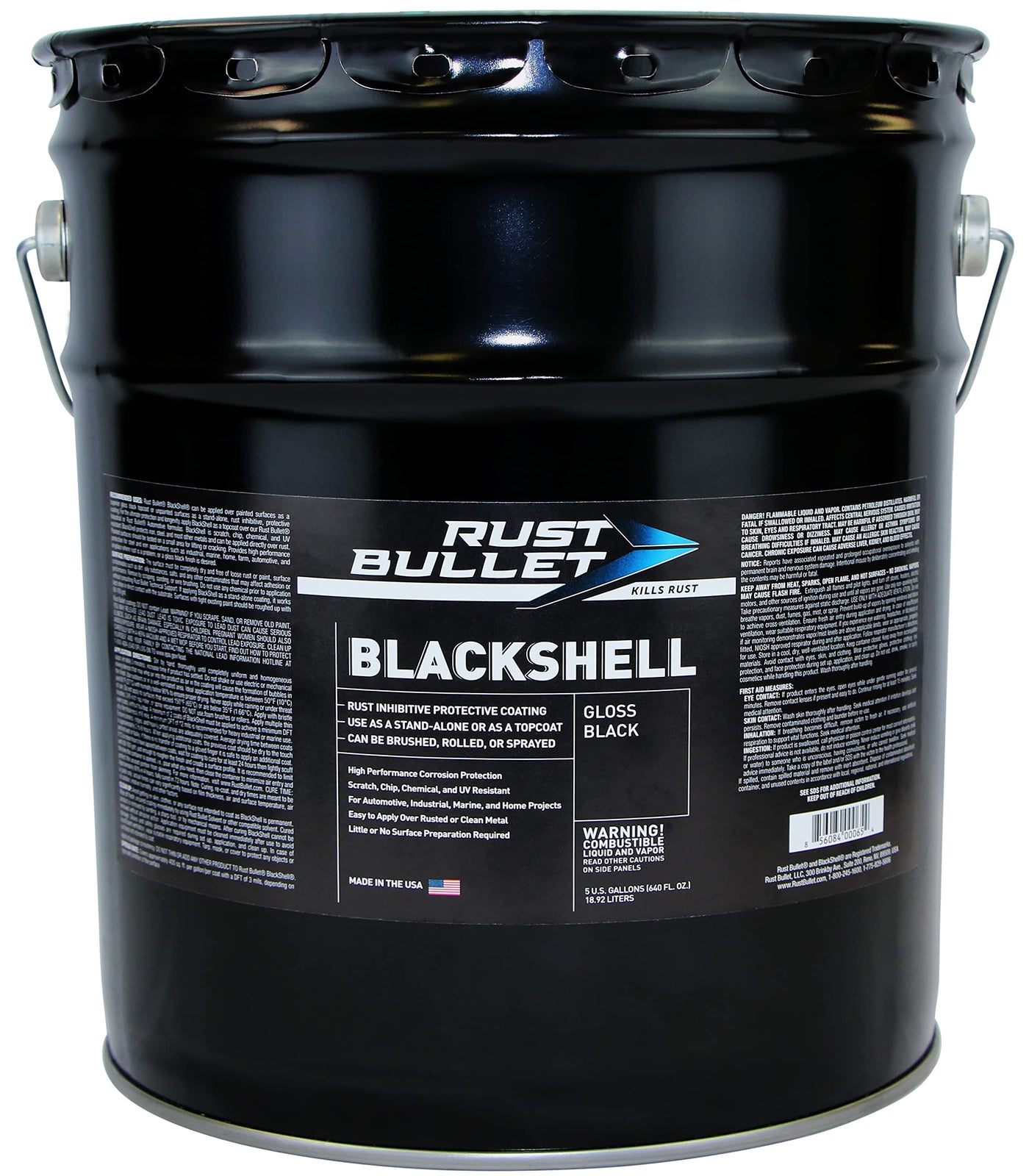 Rust Bullet Blackshell - Gloss Black - 5 Gallon - Corrosion Preventive Coating, Uv Resistant Rust Proofing Paint, Long-Lasting M