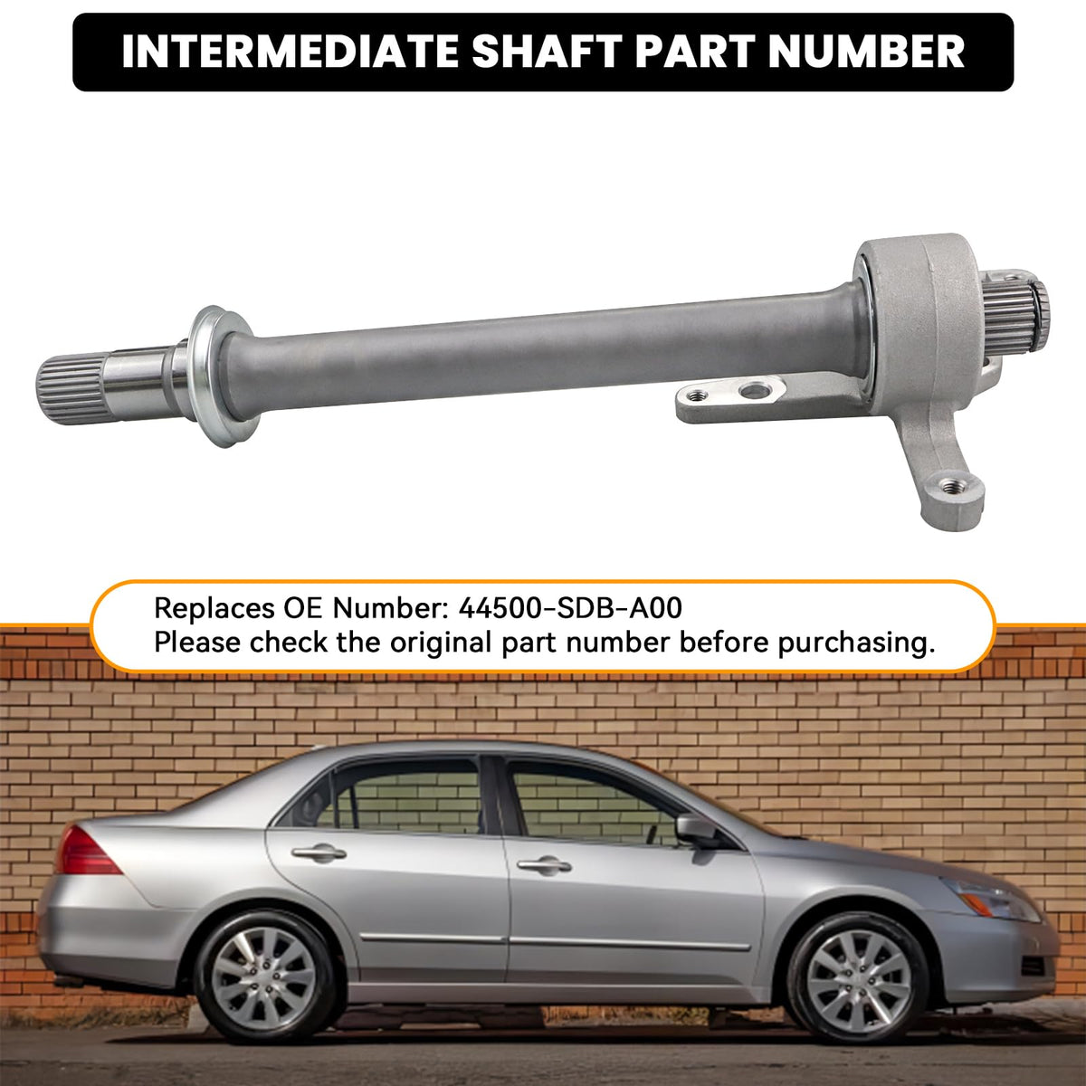 44500-SDB-A00 CV Intermediate Shaft Compatible with Honda Accord 2003-2007, Acura TL 2004-2006, Replaces 44500SDBA00 Axle Half S