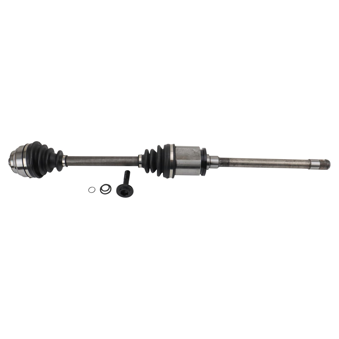 CV Axle AssemblyFitmentCompatible with: 2011-17 BMW X3 Front Passenger SideCompatible with: 2015-18 BMW X4 Front Passenger SideProduct AttributesShaft Diameter: 1.06 inBoot Rib Quantity: 2Inboard Spline Quantity: 27Shaft Diameter: 27 mmAxle Nut Length: 3.31 inCompressed Length: 34.72 inOutboard Spline Quantity: 37Axle Nut Length: 83.5 mmCompressed Length: 881.5 mmBoot Color: BlackInboard Joint Type: MaleDynamic Damper Attached: NoABS Tone Ring Included: NoGrade Type: RegularBoot Material: RubberShaft Material: SteelAxle Nut Included: YesProduct Features 100% New: Manufactured to tighter tolerances for extended service life Neoprene Boots: Improved durability compared to stock material Moly Greased: Specifically-designed grease shield to reduce premature wear Application Specific Design: No modificationItem DetailsTRQ CV (constant velocity) drive axles are manufactured using premium raw materials designed to restore original performance. TRQ CV drive axles are new, so there is no core charge with your TRQ purchase. TRQ-designed drive axles utilize neoprene boots, moly grease, stainless steel clamps, and heat-treated ball tracks to ensure extended service life. Each TRQ axle is application-specific so each spline and thread will mate properly for a seamless fit. All products are fit and road-tested in our Massachusetts R&D facility to ensure we deliver on our promise of Trusted Reliable Quality.Reference NumbersBMW: 31607619658CARDONE New: 66-9758GSP: NCV27051TrakMotive: BM-8161