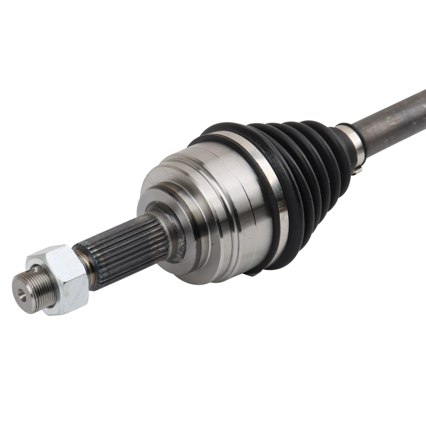 CV Axle AssemblyFitmentCompatible with: 2014-19 Nissan NV200 Taxi Front Passenger SideProduct AttributesAxle Nut Length: 0.75 inShaft Diameter: 1.02 inAxle Nut Length: 19 mmBoot Rib Quantity: 2Shaft Diameter: 26 mmInboard Spline Quantity: 27Outboard Spline Quantity: 29Compressed Length: 37.24 inCompressed Length: 946 mmBoot Color: BlackInboard Joint Type: MaleBoot Material: NeopreneABS Tone Ring Included: NoGrade Type: RegularShaft Material: SteelAxle Nut Included: YesProduct Features 100% New: Manufactured to tighter tolerances for extended service life Neoprene Boots: Improved durability compared to stock material Moly Greased: Specifically-designed grease shield to reduce premature wear Application Specific Design: No modificationItem DetailsTRQ CV (constant velocity) drive axles are manufactured using premium raw materials designed to restore original performance. TRQ CV drive axles are new, so there is no core charge with your TRQ purchase. TRQ-designed drive axles utilize neoprene boots, moly grease, stainless steel clamps, and heat-treated ball tracks to ensure extended service life. Each TRQ axle is application-specific so each spline and thread will mate properly for a seamless fit. All products are fit and road-tested in our Massachusetts R&D facility to ensure we deliver on our promise of Trusted Reliable Quality.Reference NumbersOEM Part Number: 391003LN0A