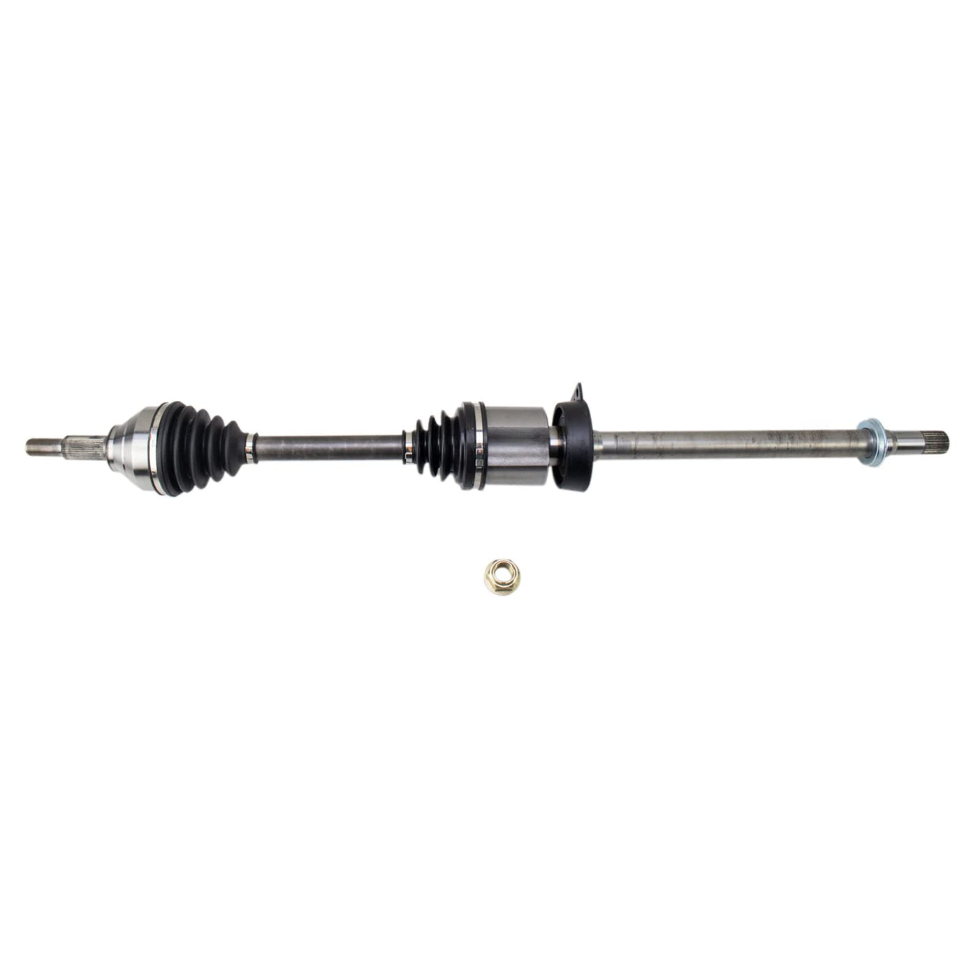 Q: Does the TRQ Front Right CV Axle come with an axle nut and socket size information?A: Yes, the TRQ Front Right CV Axle includes an axle nut. The axle nut socket size is 32 mm, and the axle nut thread size is M22x1.5, allowing for straightforward installation.