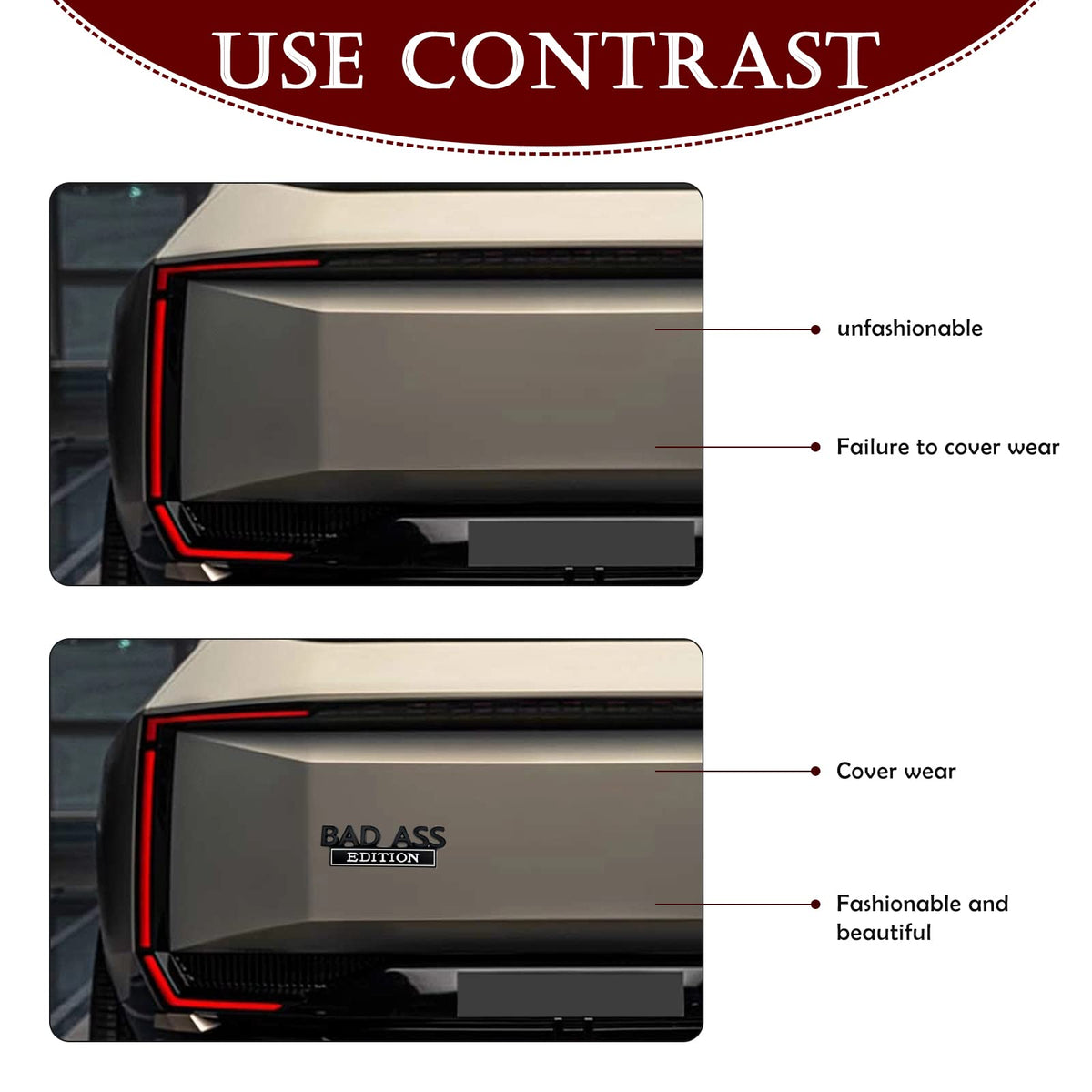 Q: Can the BAD ASS Edition Emblem be removed easily without damage?A: Yes, the emblem is designed to be removable. If you ever want to take it off, it can be done without damaging the surface of your vehicle. Just be gentle while peeling it off to avoid any potential adhesive residue.