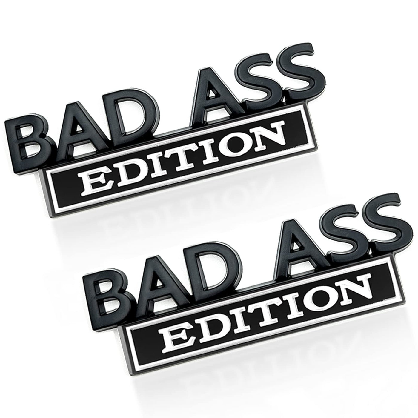 2Pcs Bad-Ass Edition Emblem For Car, 3D Fender Badge Decal, Auto Accessories For Tailgate Front Grille Hood Trunk, Car Exterior Replacement Accessories, Compatible With Car Motorcycle (Black & White)