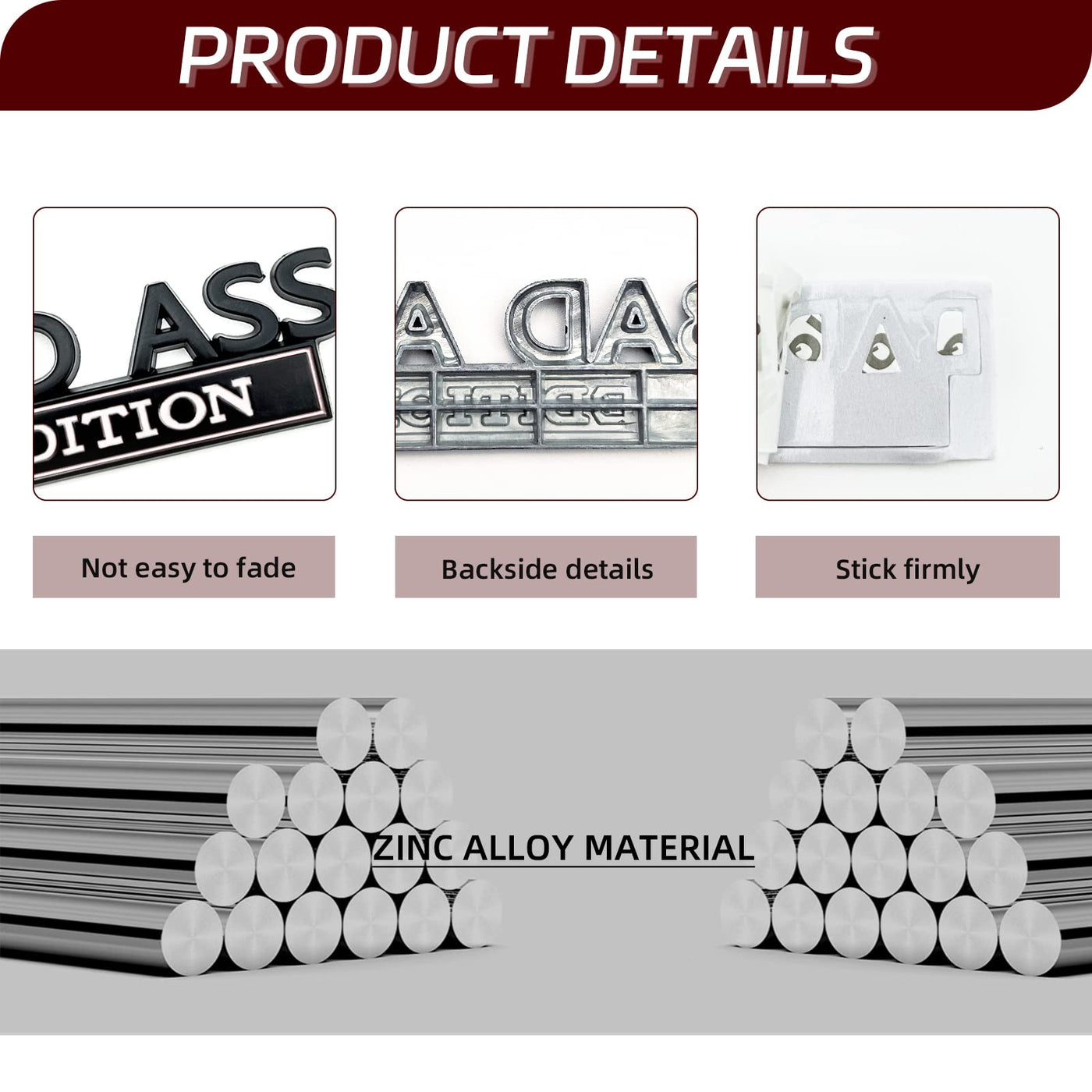 Q: What materials are used in the BAD ASS Edition Emblem?A: The BAD ASS Edition Emblem is made of high-quality zinc alloy, which ensures durability and resistance to wear and tear. It is also waterproof and can withstand various weather conditions without fading or cracking.