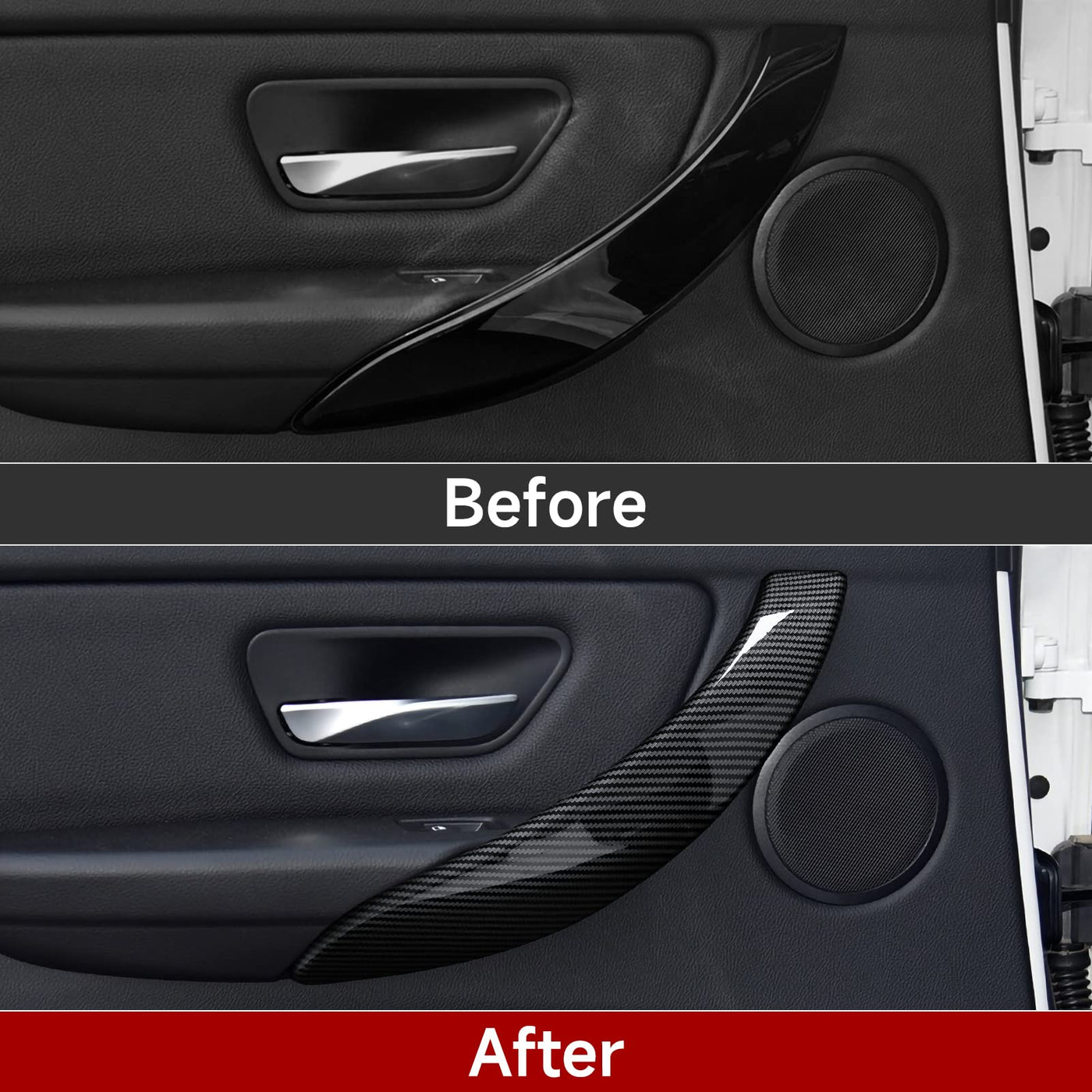 ?? [Accessory for BMW 3 4 Series.] -- Carbon Style Decal compatible with BMW F30 F31 F34 3GT F32 F33 F36 Accessories. [? Please check your car model and pictures. Thank you!] | ?? [High Quality ABS Material.] -- These Sticker for BMW 3 4 Series are made of premium ABS Material. Excellent abrasion resistance / aging resistance / sun resistance / heat & cold resistance. | ?? [Cover & Avoid Scratches.] This case cap for BMW can prevent car interior from fraying and aging. / Protect the surface from scratches./ Dustproof / Highlight the beauty of car body. | ?? [Easy to Install and Remove.] -- Self-adhesive design, just peel off and stick it. Easily to remove without residue and will not damage the painted surface of your vehicle. | ?? [Easy to clean.] -- Only a wipe can make it clean. (If any problem, please feel free contact us.)