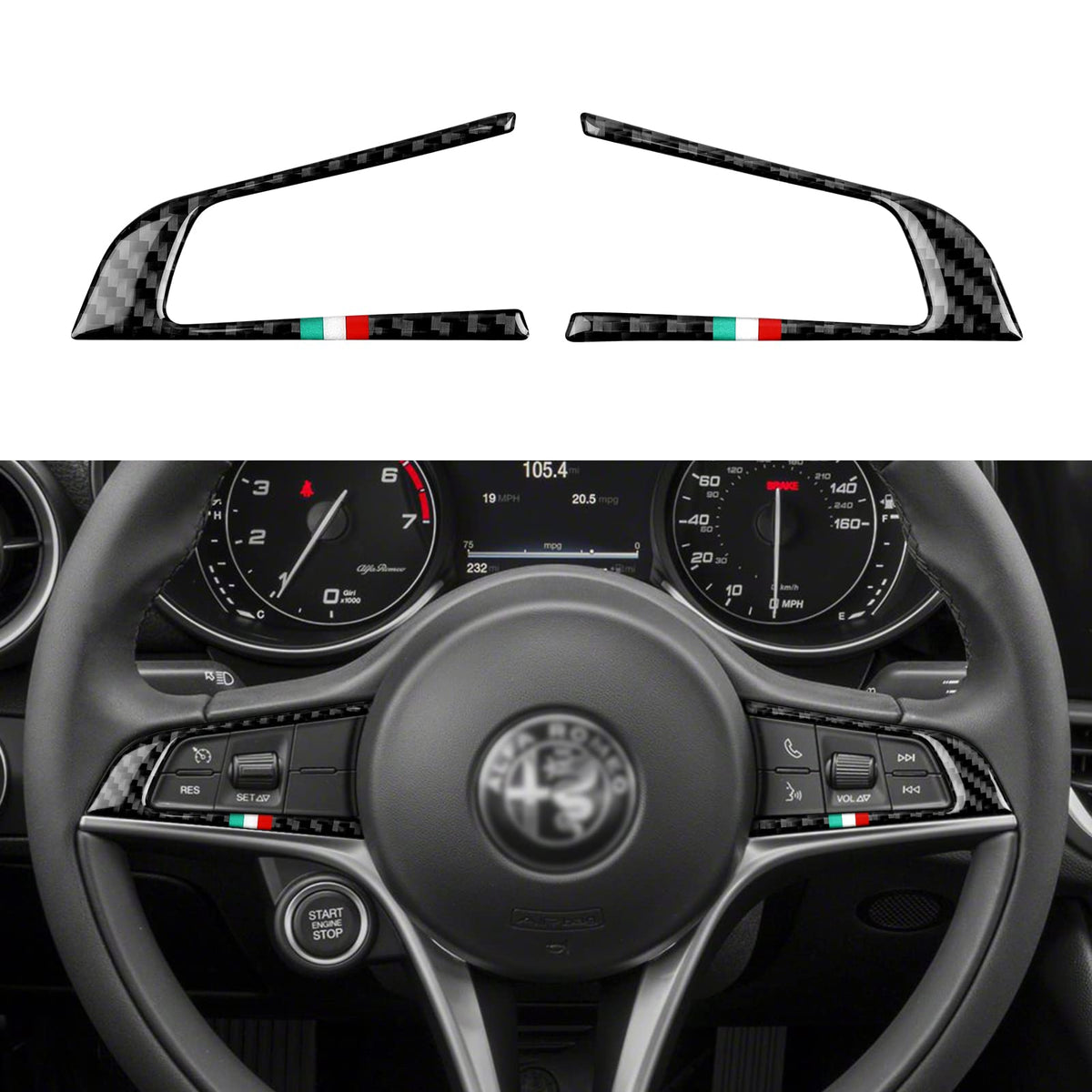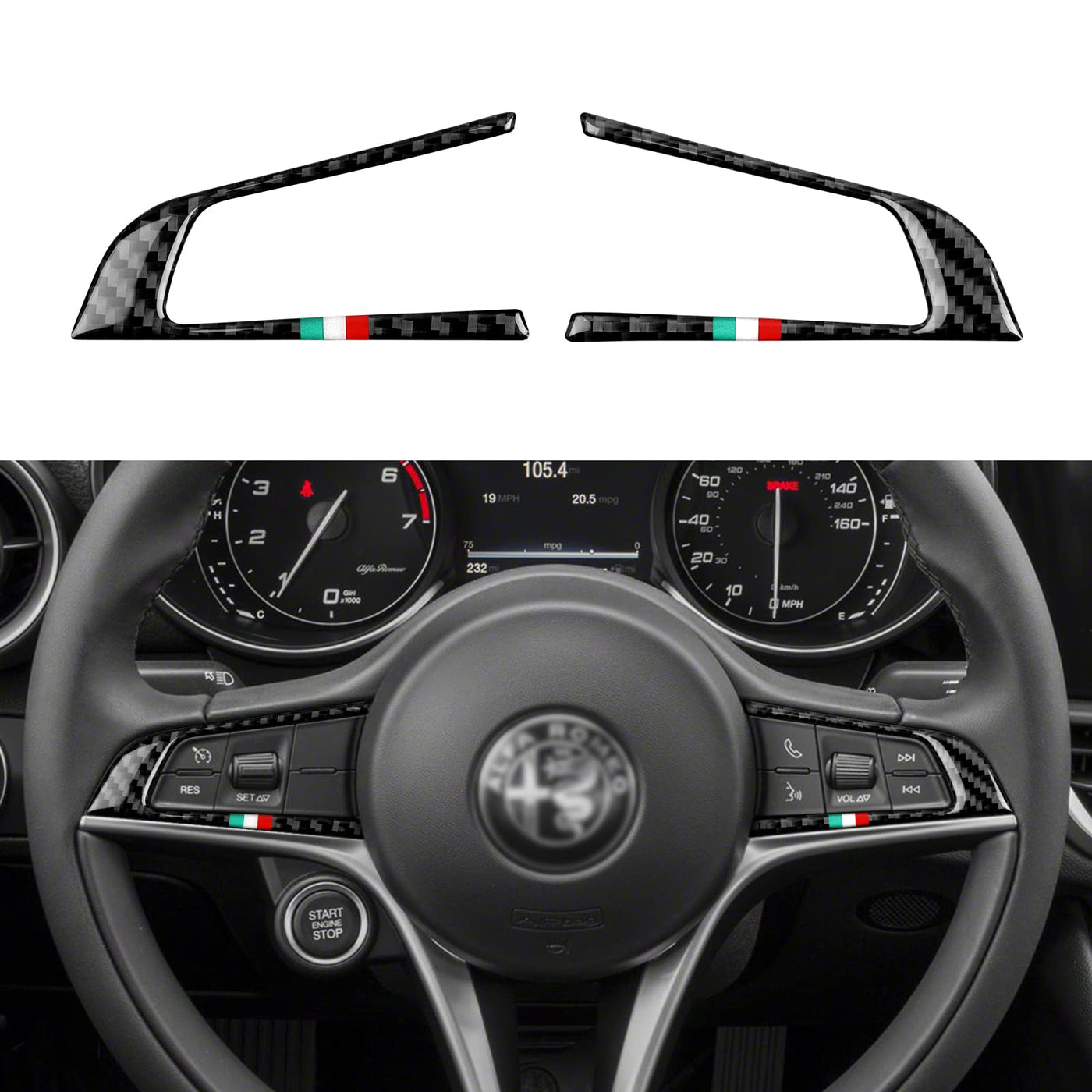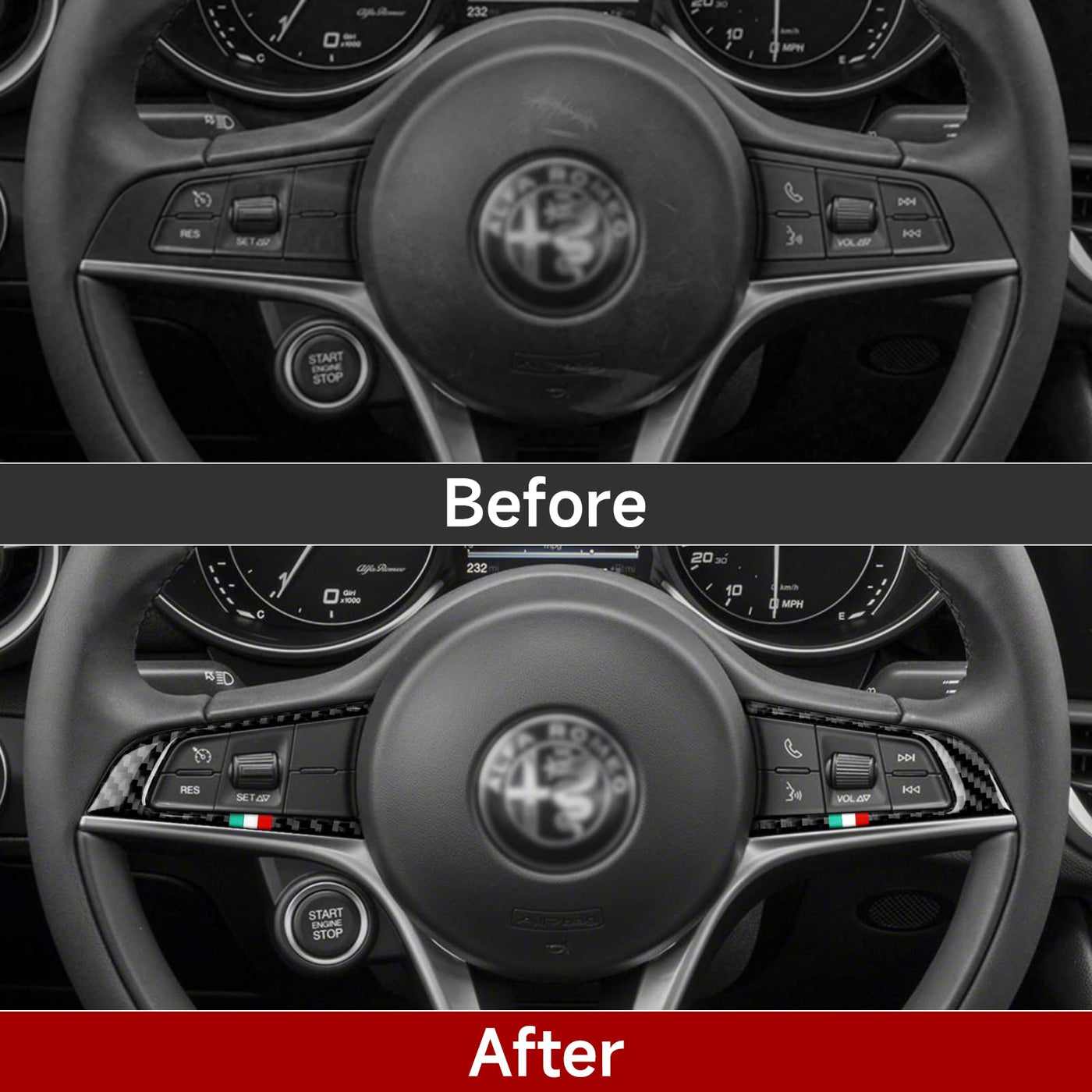 Q: Is this steering trim sticker compatible with Alfa Romeo Giulia and Stelvio models?A: Yes, this carbon fiber steering trim sticker is specifically designed to fit Alfa Romeo Giulia and Stelvio models from 2016 to 2019.