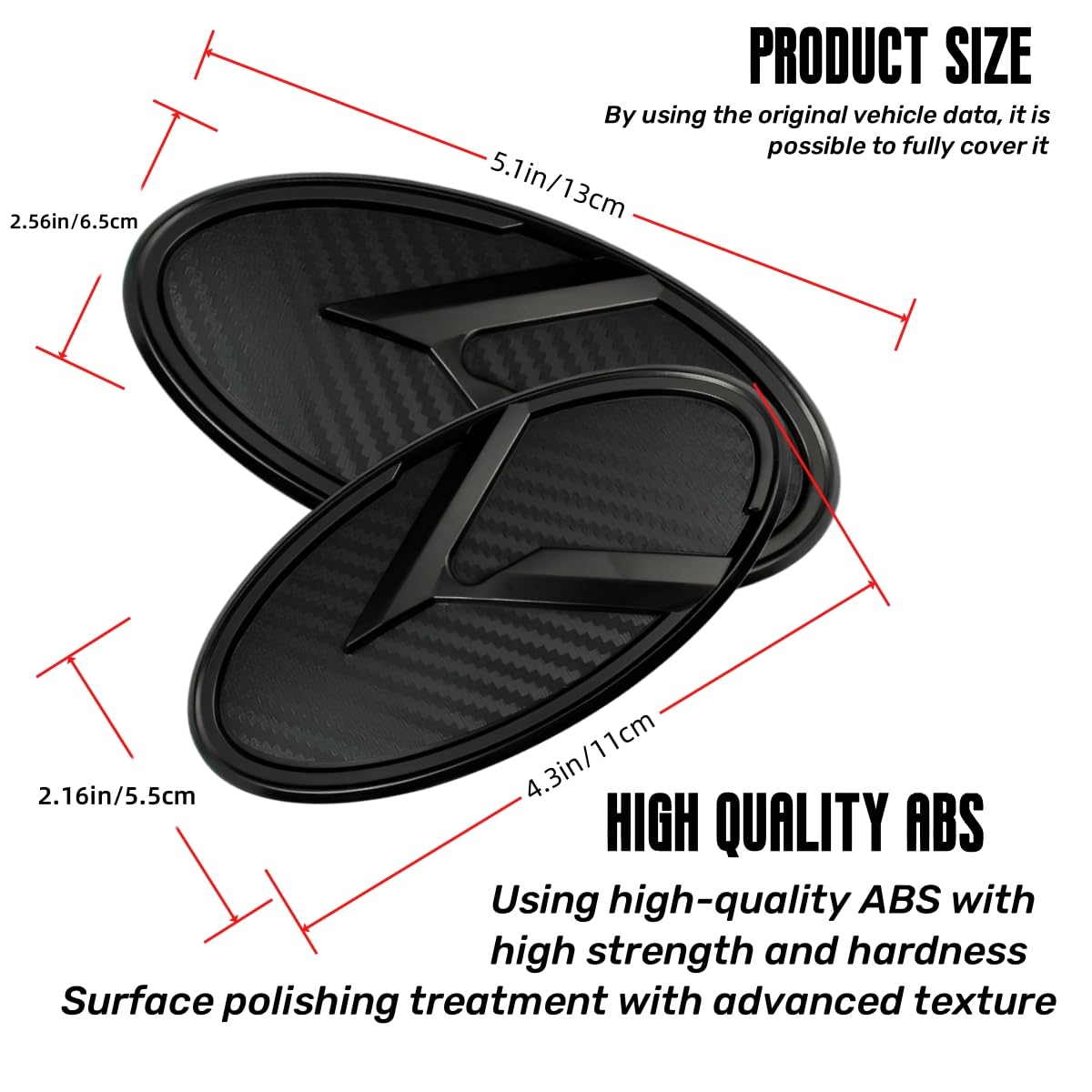 2Pcs K Logo Front Hood Trunk Emblem Badge Compatible with Forte Sedan Optima Cerato .etc (Carbon Fiber Black)