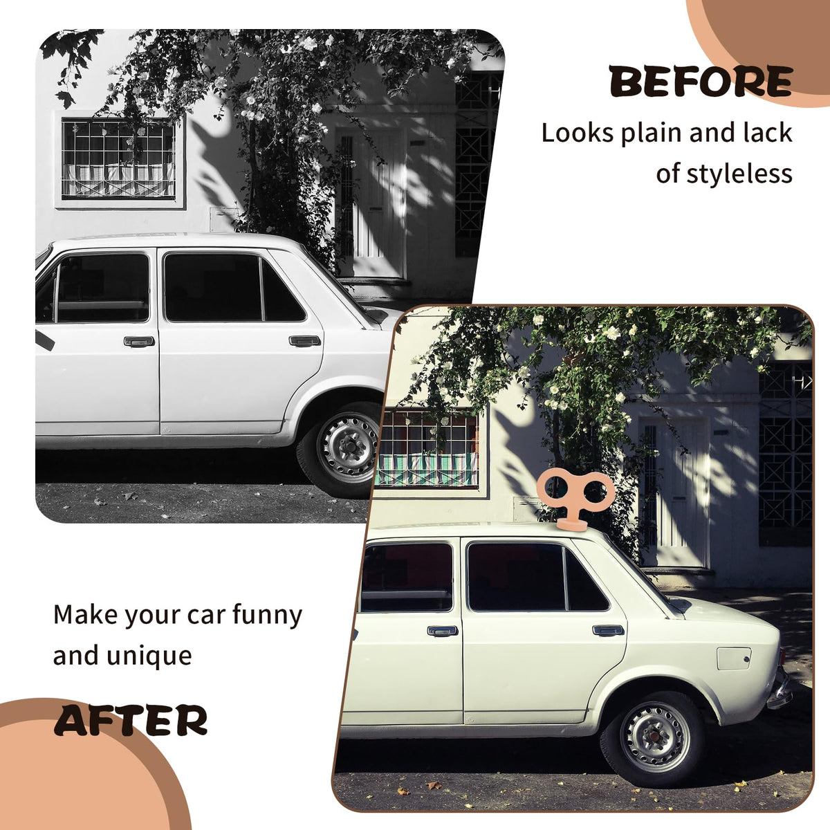 COGEEK 3D Car Wind Up Key, Cute Clockwork Wind Up Key for Back of Car Roof Decoration(Light Orange