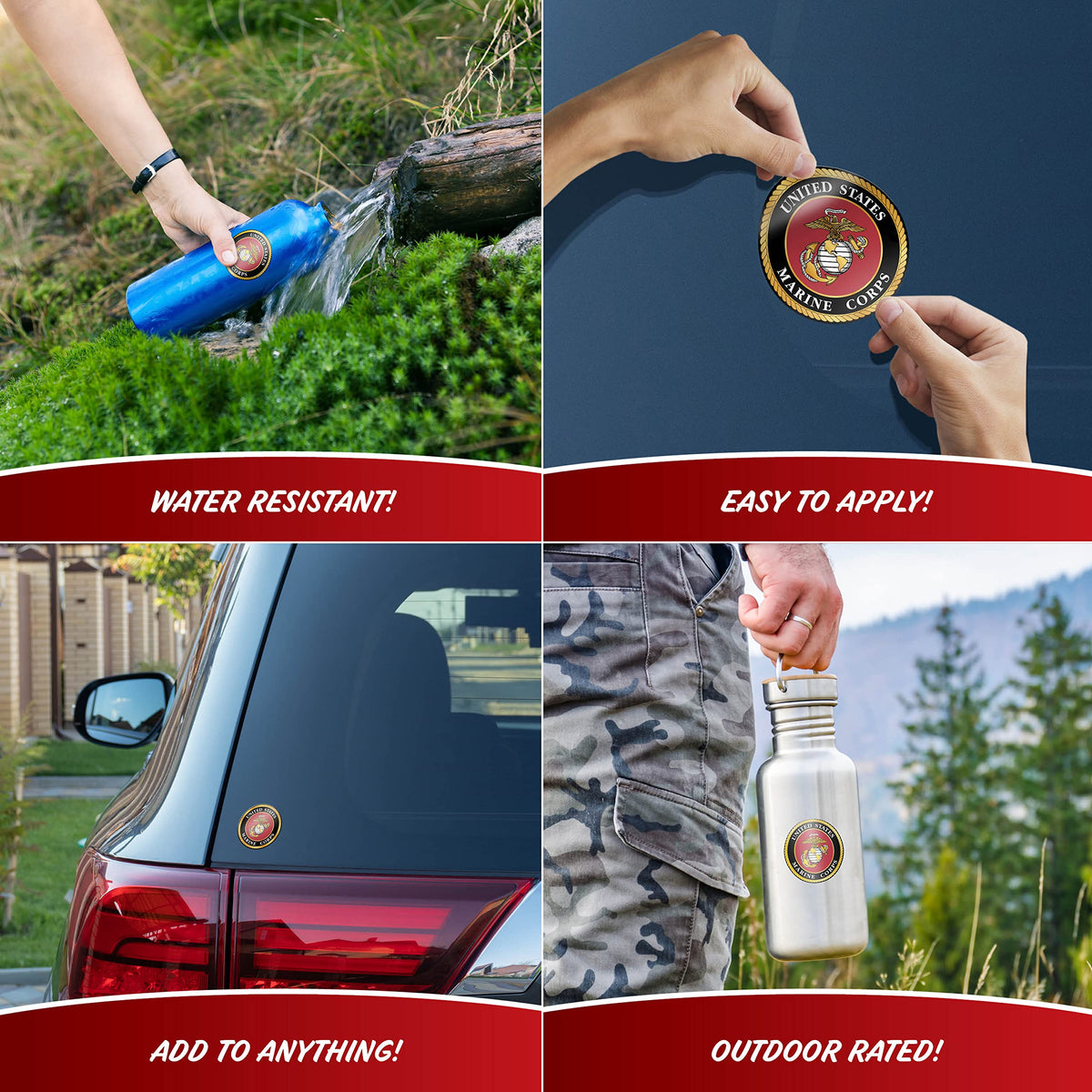 Decalcomania Officially Licensed Us Military Decals Are The Perfect Decor For Any Proud United States Military Veterans Car, Phone, Tablet, Laptop, Hard Hat, Or Other Smooth Surface! Our Licensed Marine Window Sticker Is Also Available For The United States Navy, Coast Guard, Air Force And Army. Our Marine Emblem Decals Are Created With Top Of The Line Materials That Are Guaranteed To Stick To Any Smooth Surface. The Stickers Are All Weather Proof And Will Withstand The Harshest Of Climates And Car Washes. Military Decals Are Easily Removable Without Leaving Unwanted Residue. Permanent Adhesive Is One Time Use Only And Not Reusable When Removed. For Best Adhesion, Do Not Apply To Cold Surface. Decalcomania Marine Decals Now Features Gold Chrome Finish. Each Decal Set Includes Four Stickers: One Large Us Marine Corps Decal (Sized 4 ), And Three Additional Decals Ranging In Size From 1.75'' To 3 That Make Them Perfect For A Variety Of Surfaces. Decalcomania Only Uses The Highest Quality Materials That Are Made In The United States Of America. Our Marine Corps Stickers Are Officially Licensed By The United States Marine Corps And Feature A Holographic Seal To Ensure License. Decalcomania Usmc Decals Are The Perfect Gift For Your Husband, Son, Grandfather And Everyone Who Supports And Loves Our United States Marine Corps!